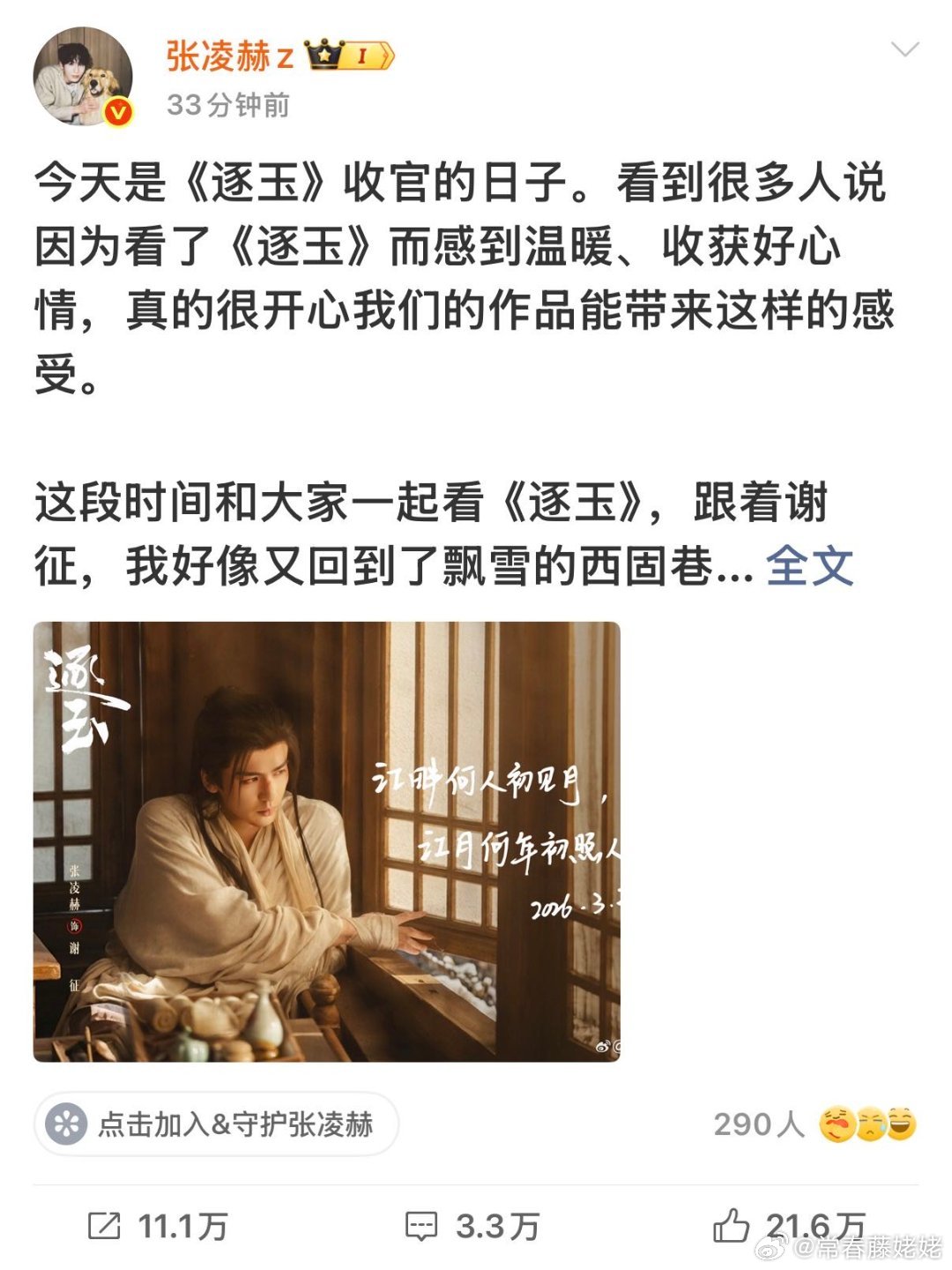 逐玉收官 张凌赫逐玉收官小作文 逐玉这阵子确实挺热闹的,该说不说全民讨论度还蛮高,今天就收官了感觉内娱又要迎来一阵子冷静期了 逐玉