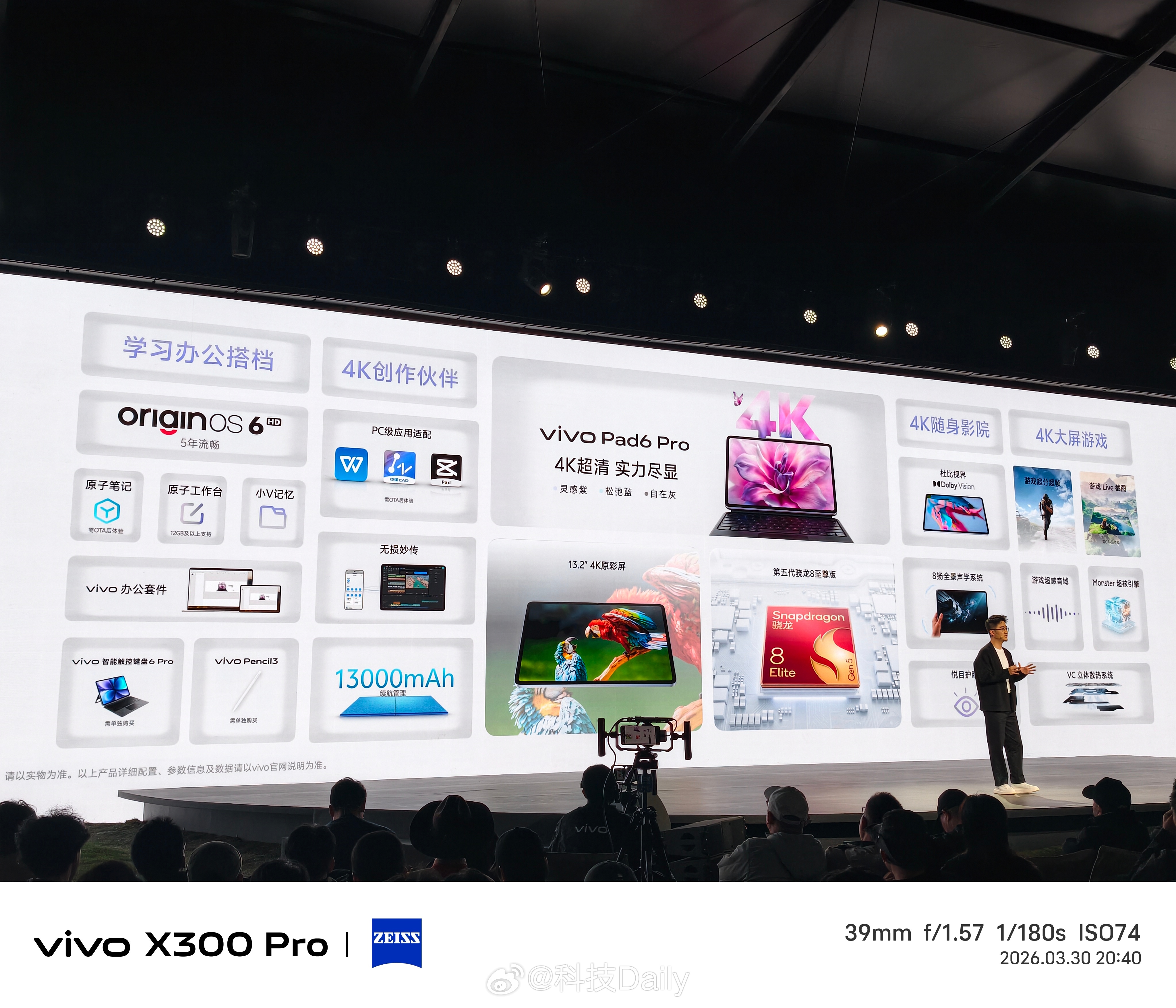 4K性能工作台工作娱乐全面兼顾,13.2英寸4K原彩屏,第五代骁龙8至尊版,支持PC文档和剪辑软件,实力妥妥当当,价格4299起。vivo X300 Ultra专业V单vivo X300s超能小V单 和平板一起发布。