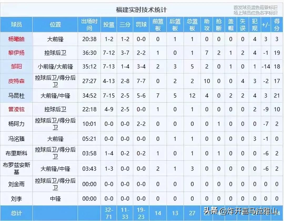 辽宁男篮客场102-94战胜福建队,赛后乌戈教练应该感谢这4个人。 1、莫兰德,辽宁男篮这一口气全靠莫兰德吊着,不光抢篮板球还得兼顾得分,全场拿到20分和15篮板,张陈治锋不给了,所以莫兰德不得不打将近35分钟,给莫兰德累坏了。 2、付豪,上半场辽宁队的得分全靠付豪撑着,特别是罚球6投6中,全场16投8中,拿到22分4篮板。付豪得分给辽宁队的帮助很大,篮下造成了不少杀伤,否则辽宁队上半场就崩盘了。 3、赵继伟,末节关键时刻赵继伟根本就下不了场,全靠他的三分球和造犯规让辽宁队稳住局势。他本场比赛确实累坏了,真跑不动了。拿到14分11助攻6篮板,他命中率不高,但是不能要求他太多了! 4、威尔斯,全场6投5中,三分球2投1中,拿到14分2篮板2助攻。今天球队得分困难的时候,威尔斯依靠个人能力得分,让球队把比分咬住了。他有一个问题,就是体能下降后失误就多了。 总结,辽宁队得分过了100,球队五个人得分上双,在篮板球上43-27遥遥领先,可是转化得分的却不多,这是辽宁队一个问题。 王岚嵚5投0中,让球队很受伤,好在姜宇星和手帝得分效率不错,否则这几个角色球员不发挥辽宁队也很难赢球。 哈维浪费不少机会,罕见的遇到进攻端他还上头了,这是一个很危险的信号。