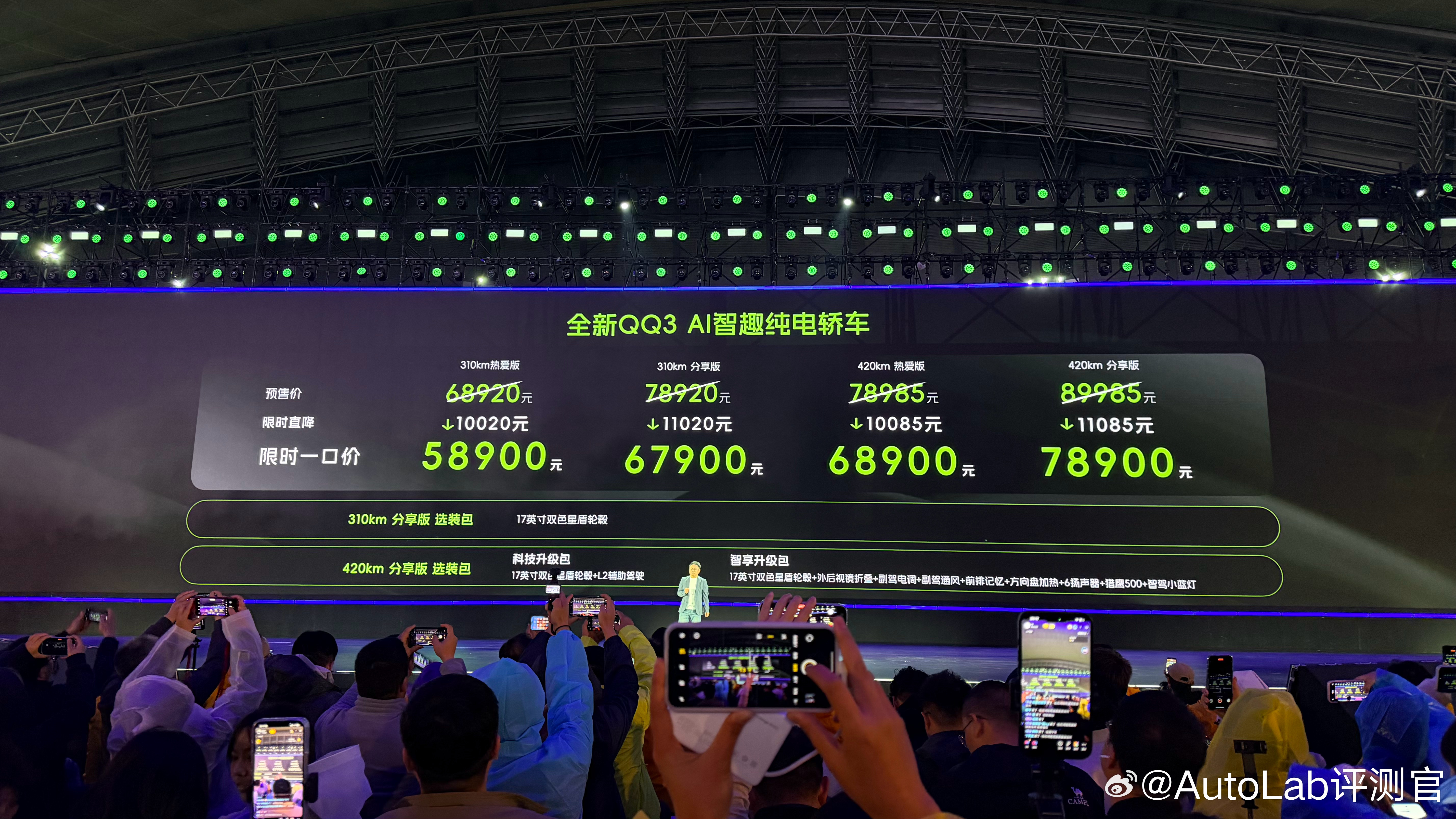 QQ3全系相比预售普遍便宜了1万多,售价来到了5.89万元-7.89万元