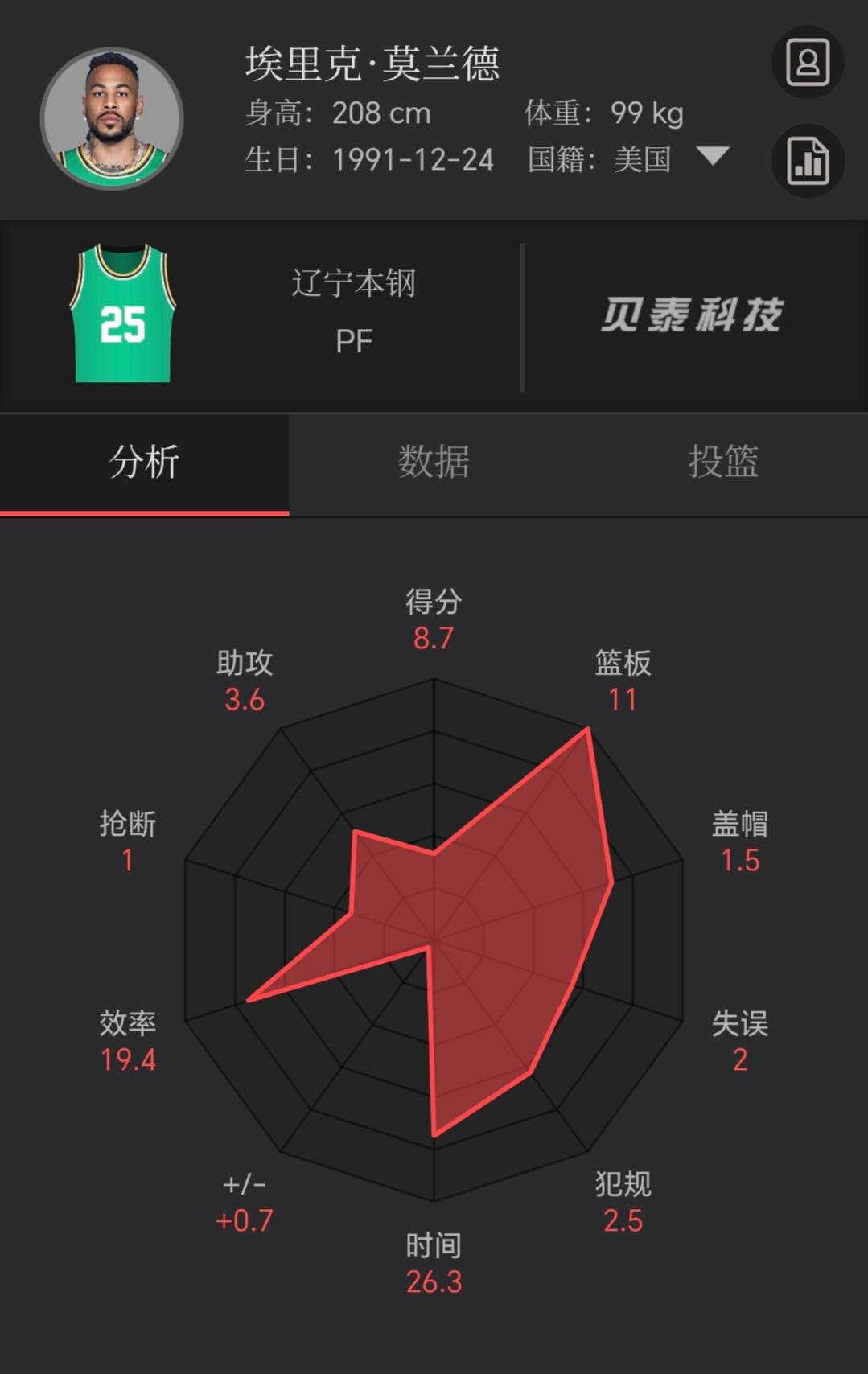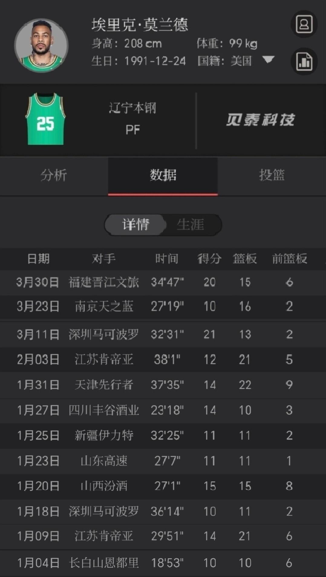 莫兰德打出赛季第12次两双,助辽宁男篮客场取胜福建!这赛季,辽宁本钢最大的惊喜就