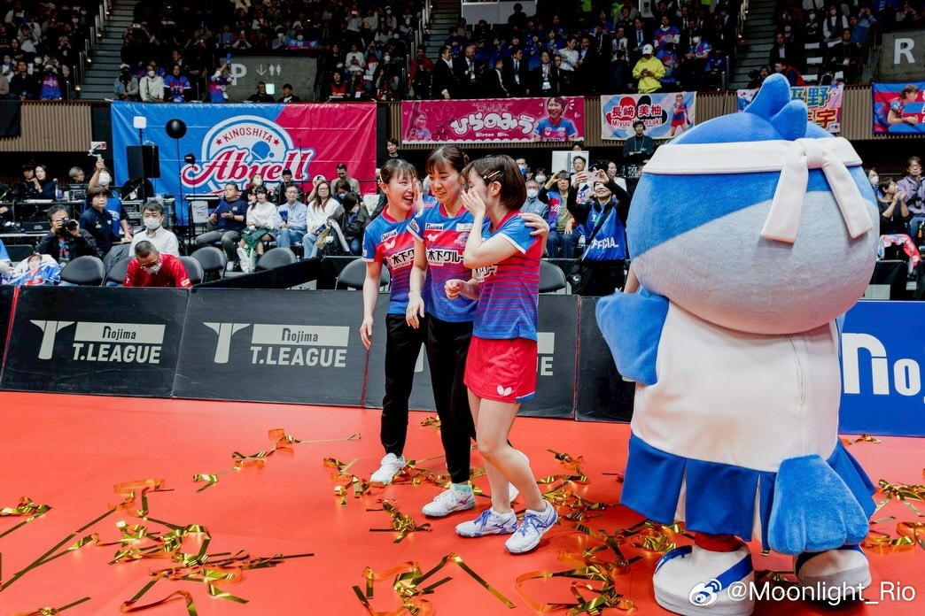 平野美宇:在T联赛中,作为木下神奈川的一员,我们成功实现了队史首次两连冠🏆