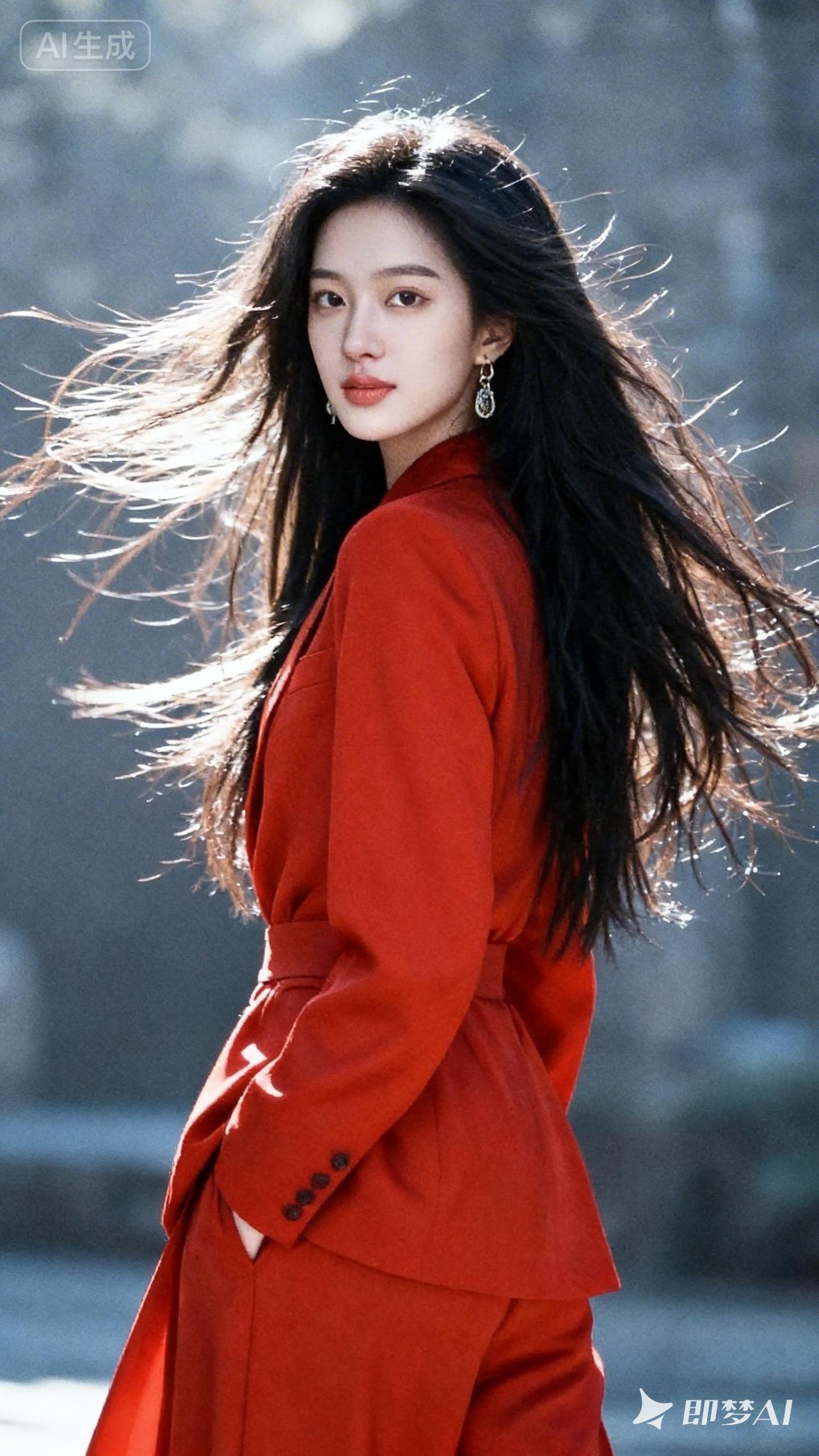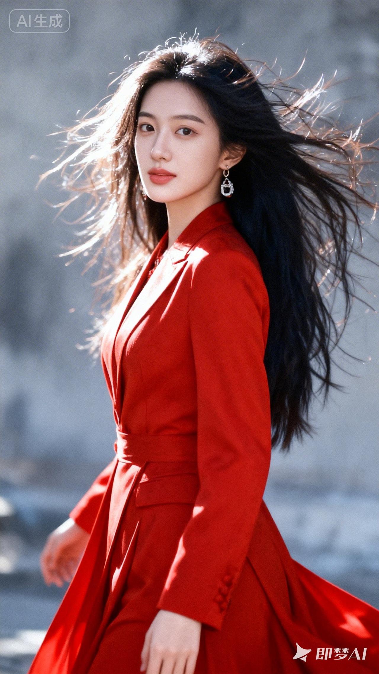风中飘逸的红衣,尽显优雅与自信!