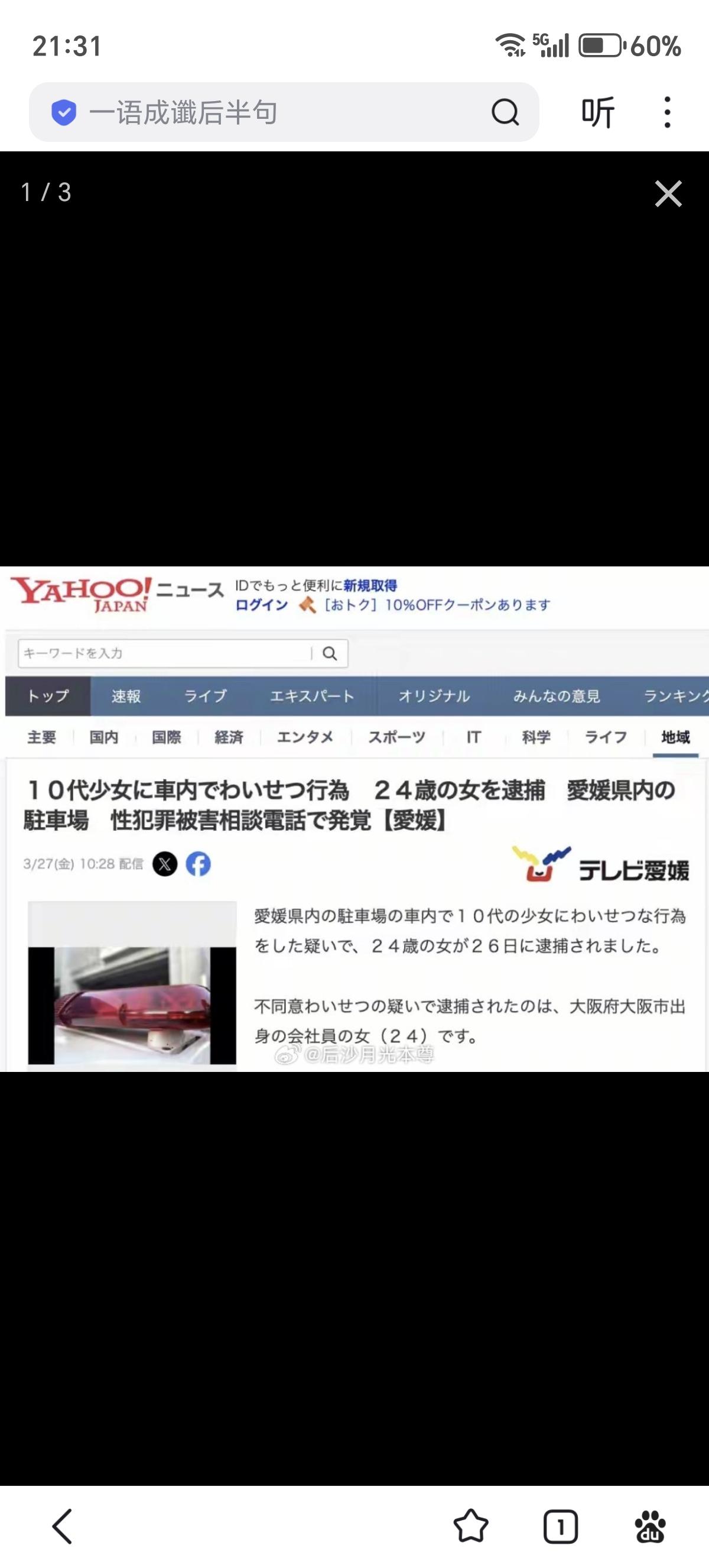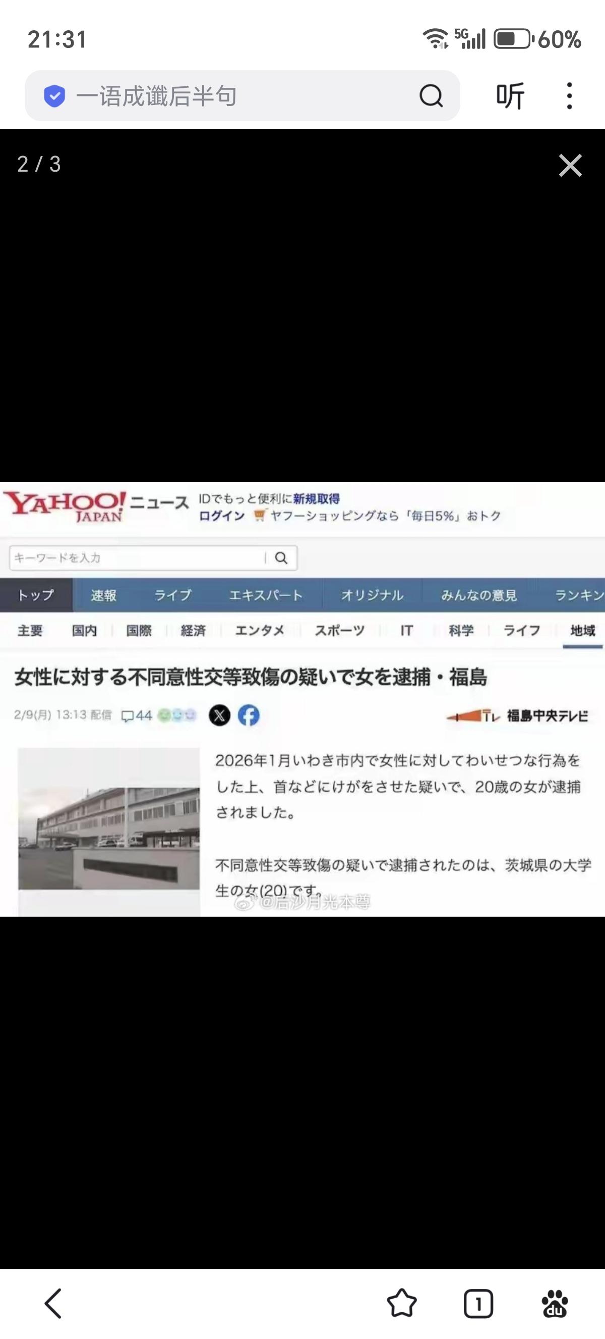 日本“爱媛电视台”3月27日报道,2025年12月,一名24岁女子在爱媛县的停车场车内猥亵一名15少女。 事后,少女通过“性犯罪受害者援助热线”求助,3月26日嫌疑人被捕 而在今年1月,福岛也发生过一起20岁女大学生强奸一名20多岁女子的案件,还导致对方受伤。 日本同性性侵最知名人物是女歌星白滨爱,她半夜在宾馆里性侵一名团队女助理长达两个小时。对方身高只有146CM,被人高马大的她折磨惨了。 不过这些案子最后都是不了了之,赔钱了事。 日本女色魔这么多吗?