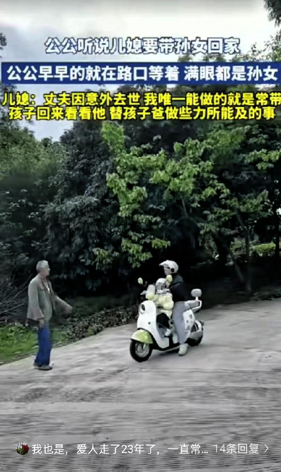 泪目了!四川,老人的独生子因意外去世,在得知儿媳将带着孙女回乡来探望自己后,提前几小时就守在路口等候。 老人的独子意外去世后,儿媳并未中断往来,时常带着孙女回乡探望。得知亲人将至,老人提前数小时便在村口等候,目光始终望向来路,不愿错过片刻。 相见时,老人颤抖着抱起孙女,简单的动作里满是长久的思念与期盼。对独居老人而言,儿媳与孙女是生活中重要的情感寄托,每一次相聚,都是平淡日子里的慰藉。 儿媳的做法尤为可贵。法律层面,她并无赡养公婆的强制义务,却始终主动维系亲情,以实际行动替逝去的丈夫尽到心意。这份选择无关约束,源于内心的善良与对家庭的珍视。 亲情的维系,有时不止依靠血缘,更在于彼此的惦记与付出。老人的等待是对亲情的渴望,儿媳的探望是对情义的坚守,两者相互温暖,构成了最朴素的人间真情。 当下生活节奏快,人们常因忙碌忽略对长辈的陪伴。而这件事提醒我们,老人所求不多,简单的探望与问候,便能驱散孤独、温暖岁月。 这样平凡却真挚的故事,值得被看见。它没有华丽的情节,却以最真实的方式,诠释了陪伴与情义的意义。