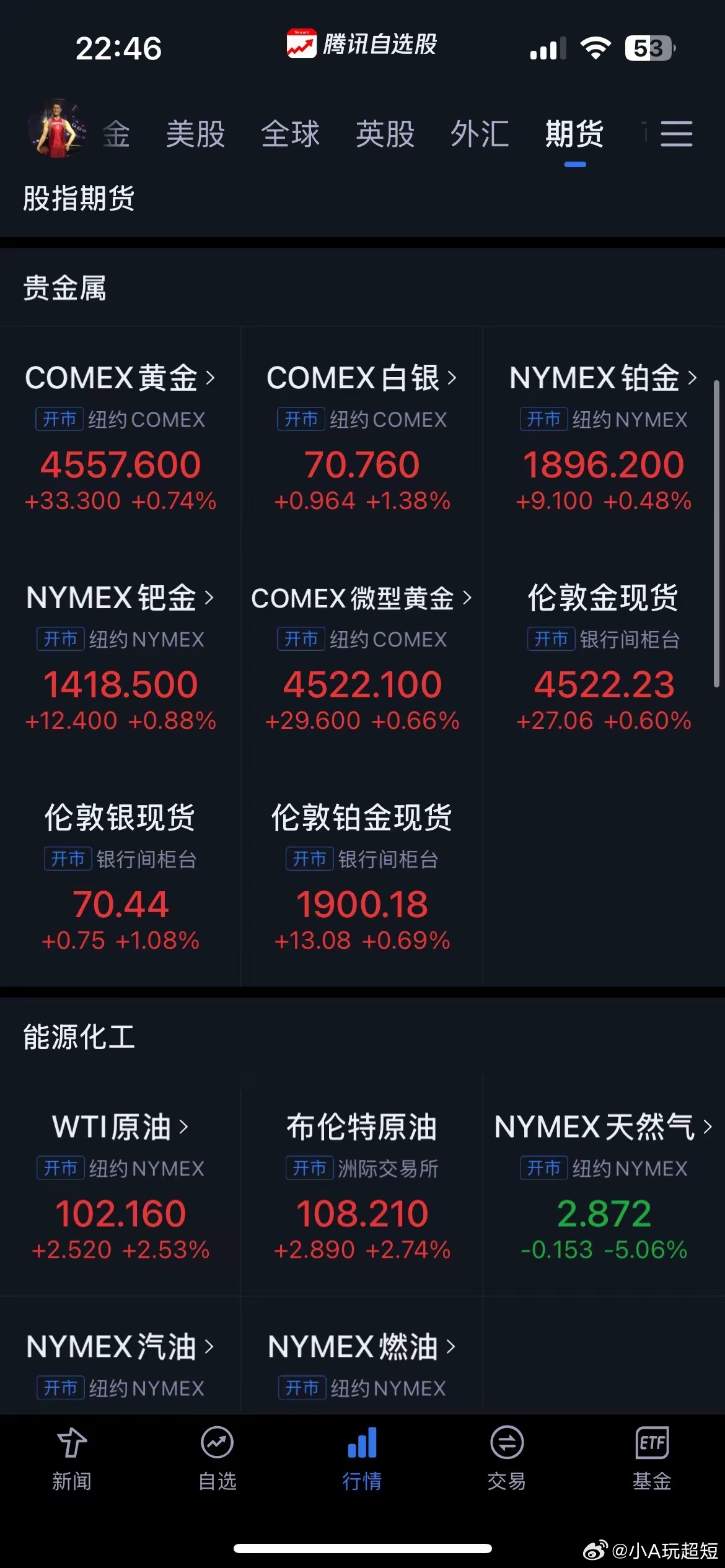 晚间欧美股市全线飘红,明天A股怎么走呢?晚间的北美股市全线飘红:道琼斯指数上涨0.63%纳纳斯达克指数上涨0.09%标普500指数上涨0.29%纳斯达克中国金龙指数上涨0.28%加拿大股市上涨0.1%墨西哥股市上涨0.58%欧洲股市也是全线飘红:英国富时100指数上涨1.27%德国DAX30指数上涨0.54%法国CAC40指数上涨0.45%意大利股市上涨0.73%西班牙股市上涨0.59%荷兰股市上涨0.05%葡萄牙股市上涨0.49%国际期货市场也是全线飘红:纽约黄金期货价格4557.6美元/盎司,上涨0.74%纽约白银期货价格70.76美元/盎司,上涨1.38%WTI原油期货价格102.16美元/桶布伦特原油期货价格108.21美元/桶欧美股市全线飘红+A50走强,为A股明天高开反弹创造最佳外部条件,A股当前“政策底+资金底”已现,外围情绪反转提供关键助攻。该跌不跌,理应看涨,多头有望借势反攻。希望明天能够继续加油吧!争取为3月关门红!
