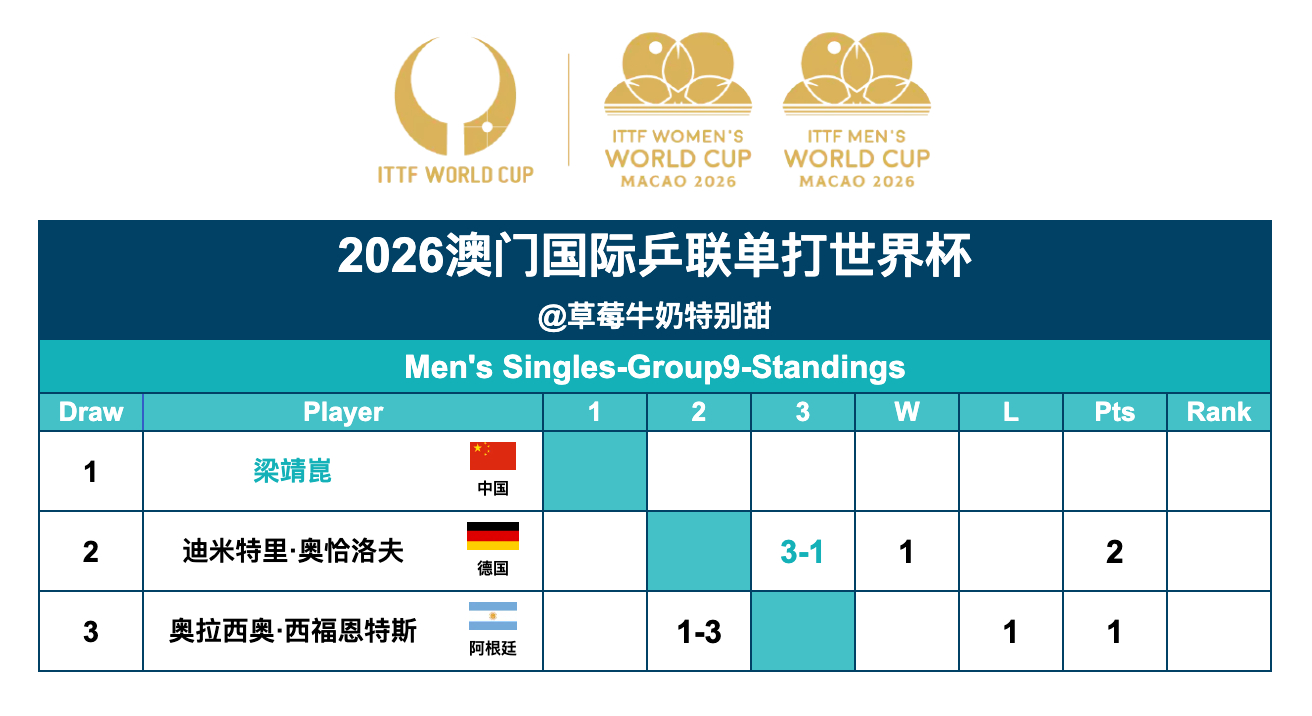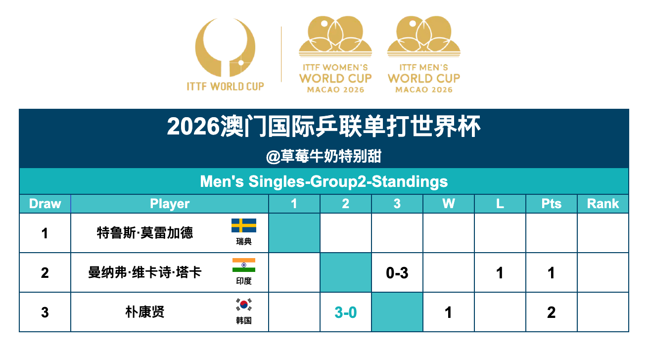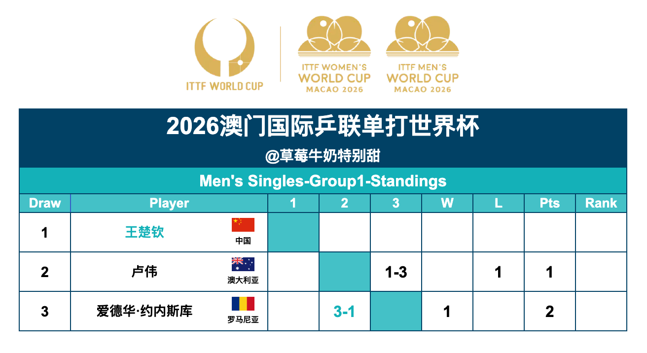 2026澳门国际乒联单打世界杯丨男单第一阶段赛况