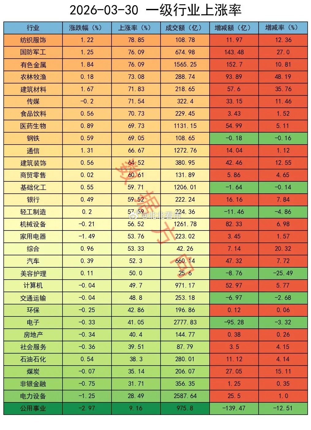 纺织服饰、农林牧渔、食品饮料、医药生物,一起进入榜单前10名