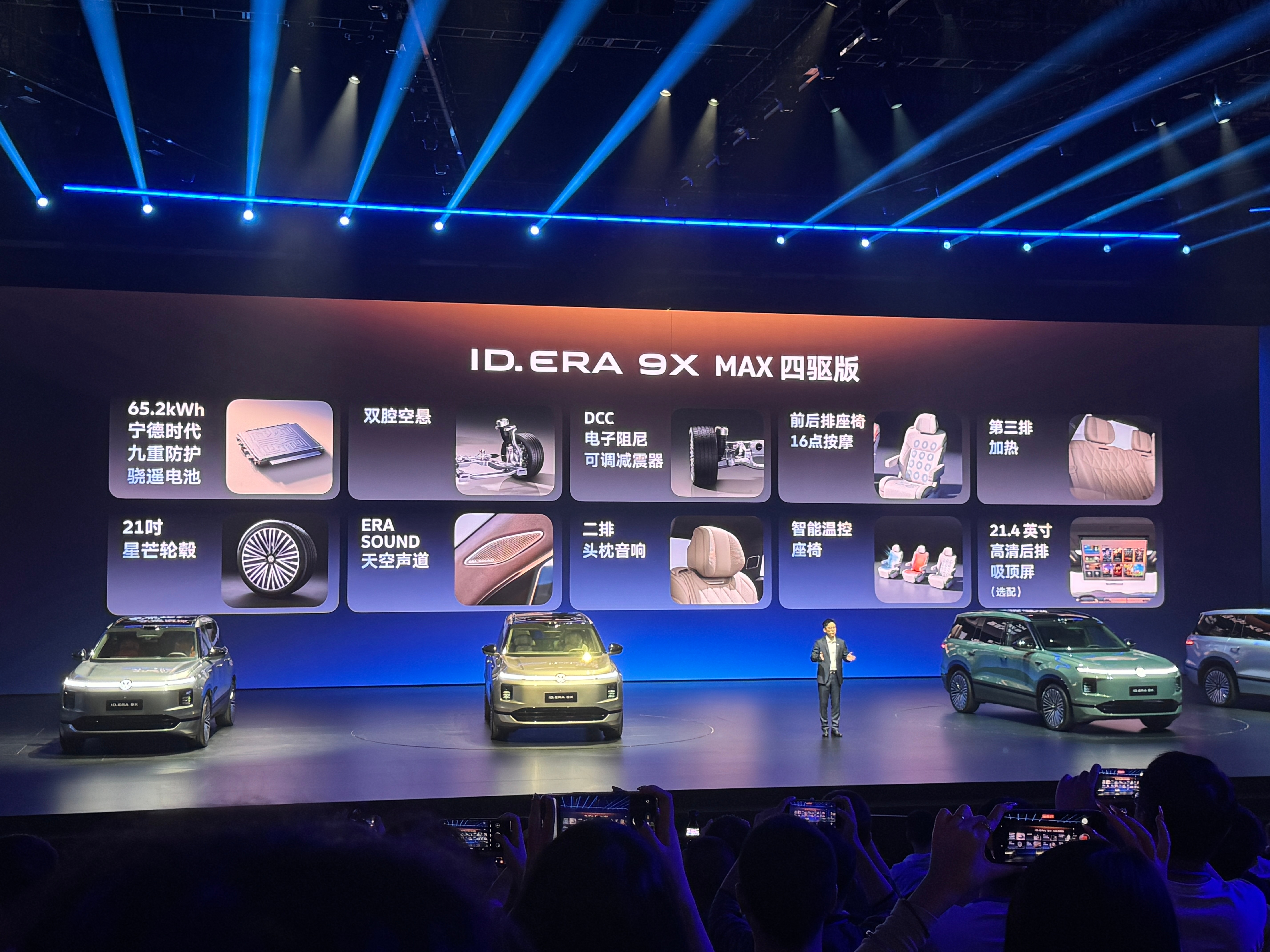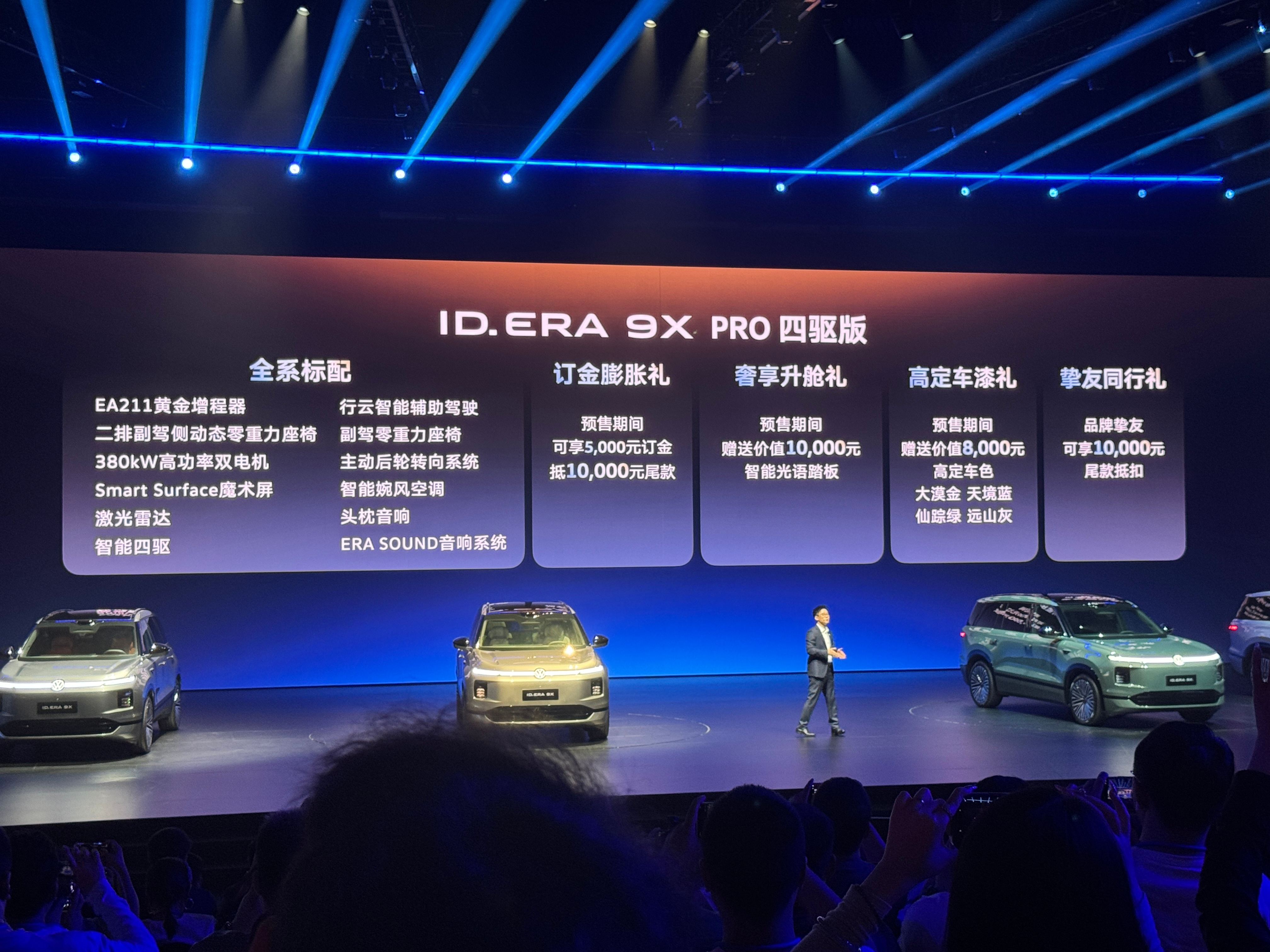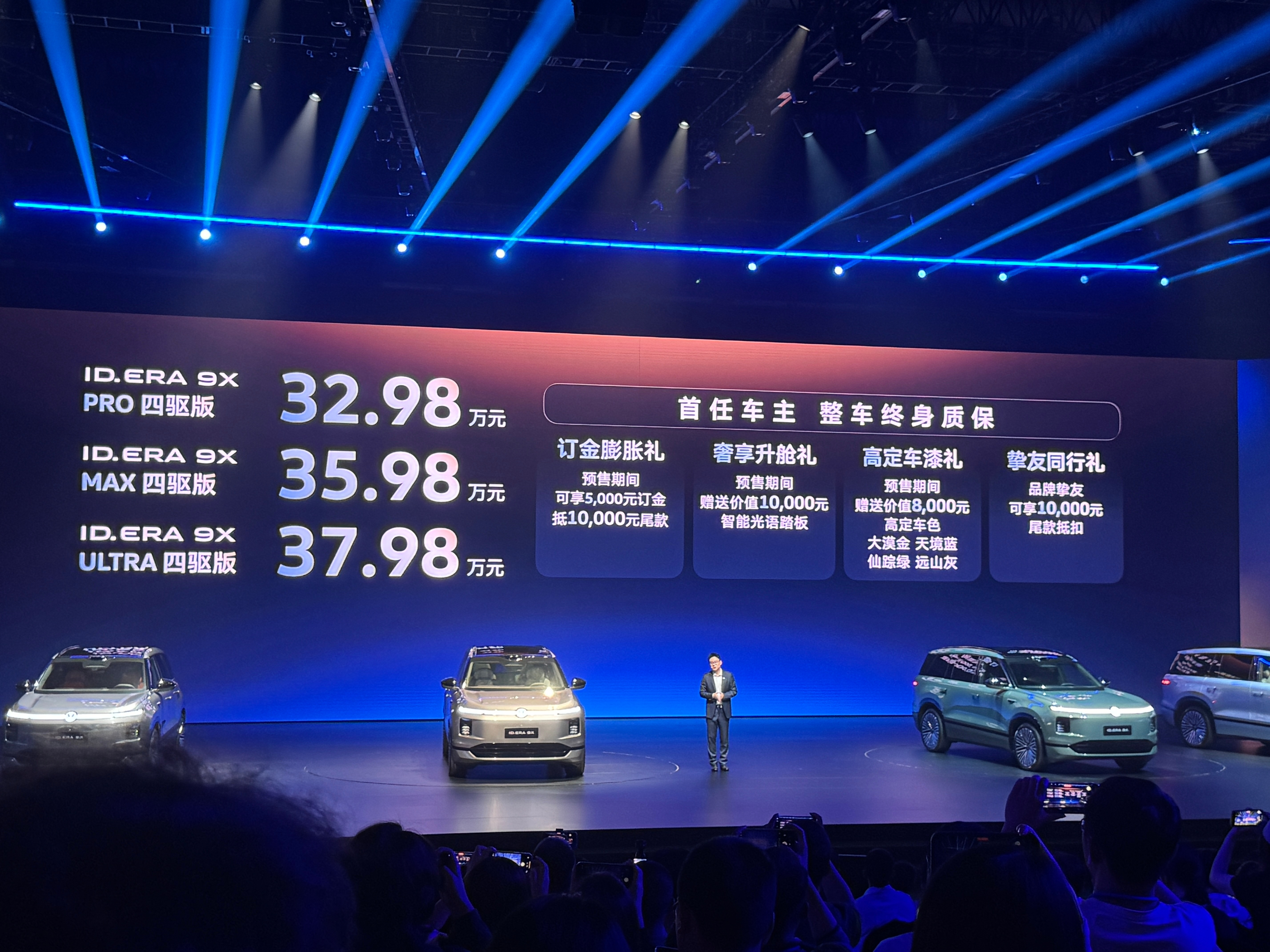 这次发布的三款车型都是四驱配置,售价分别为Pro四驱版32.98万、Max四驱版35.98万以及Ultra37.98万,对于一台中大型六座SUV来说,这个定价还是很有竞争力的。大众9X是增程车的终极答案吗IDERA9X预售发布会32.98万元起闭眼入大众9X