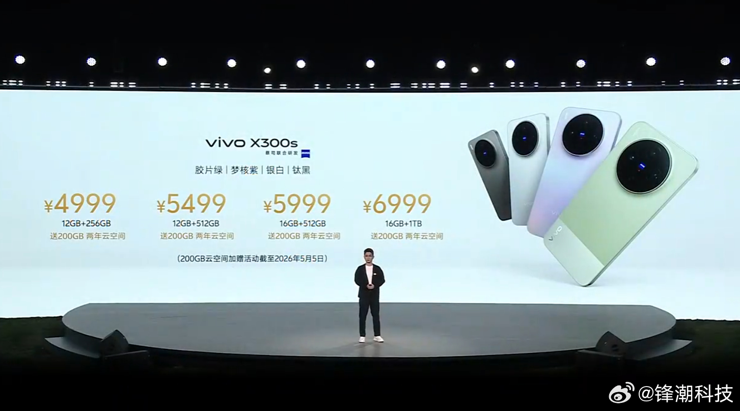 不啰嗦,直接出价格,vivo X300s价格,12+256GB 4999起,顶配16+1TB 6999。
