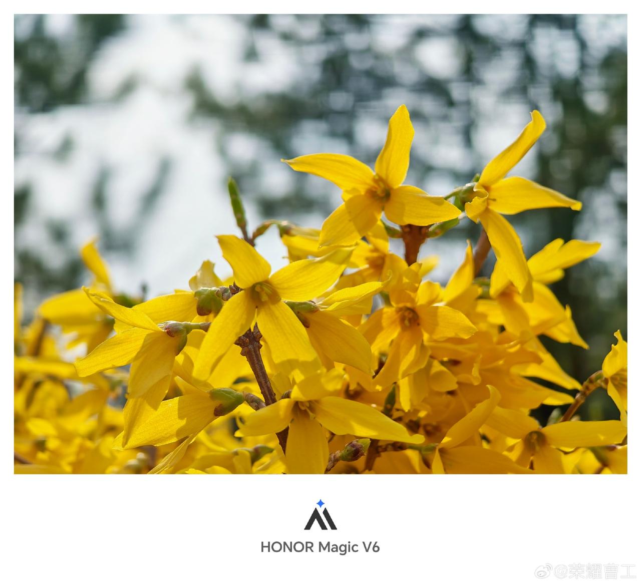 刚刚看到荣耀研发工程师曹工,分享了路边,早春极具代表性的连翘花,利用荣耀Magic V6拍摄,清晰捕捉了连翘花在春日阳光下的通透质感,背景虚化突出了主体,据说这款花卉还有药用价值,是一款常用中药材 畅聊数码新品 数码资讯
