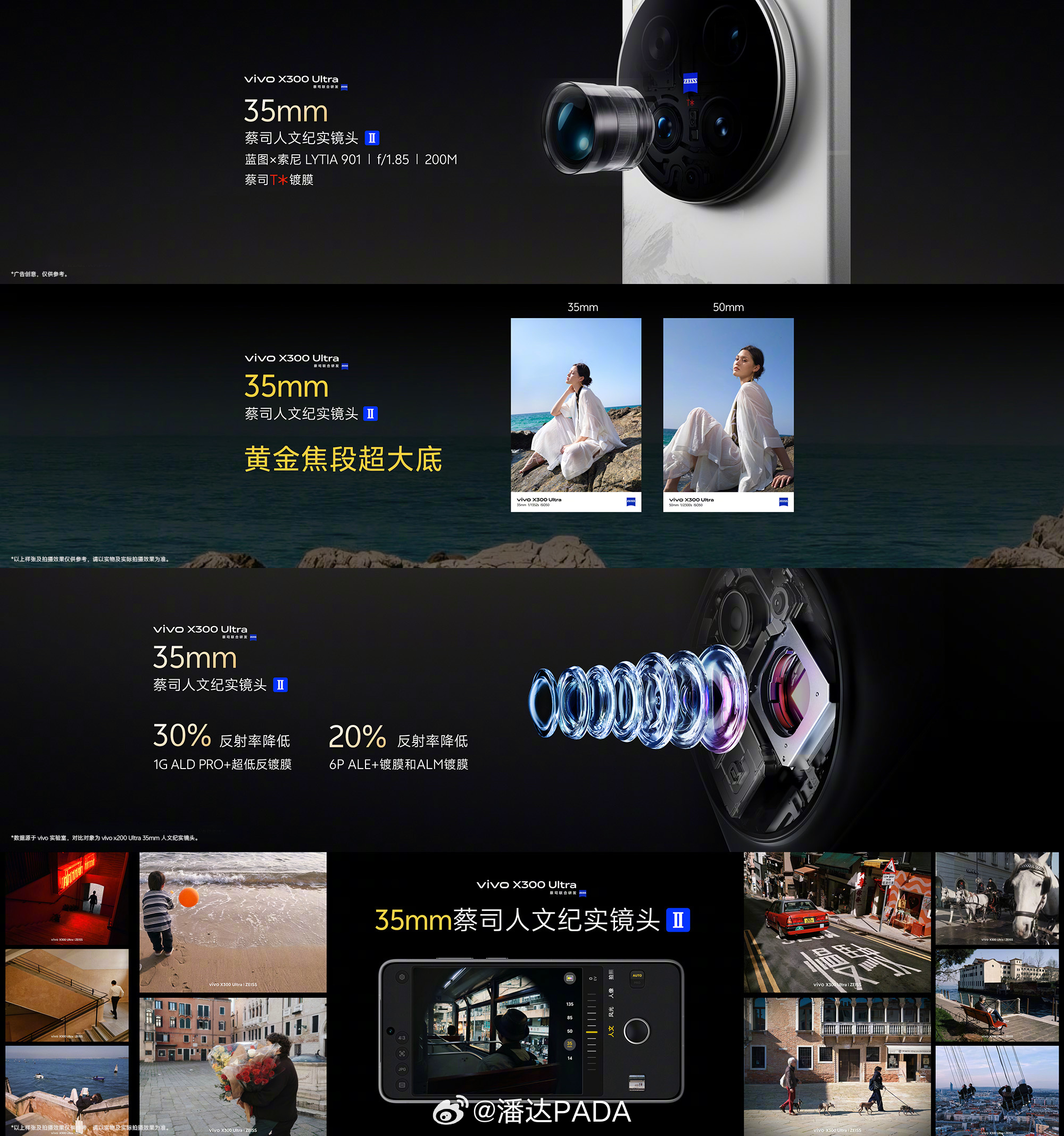 vivo X300 Ultra搭载蔡司大师镜头群:14mm超广角镜头配备1/1.28英寸大底与CIPA 6.0防抖,适用风光人像视频;35mm人文镜头采用LYTIA 901传感器,1/1.12英寸大底,光学直出并升级镀膜;85mm长焦镜头搭载2亿像素传感器,支持60fps追焦与CIPA 7.0防抖;增距镜G2 Ultra等效400mm,G2等效200mm,均配备高刷追焦与防抖技术;全焦段直出2500万像素,确保各焦段画质扎实。vivo x300 ultra专业v单
