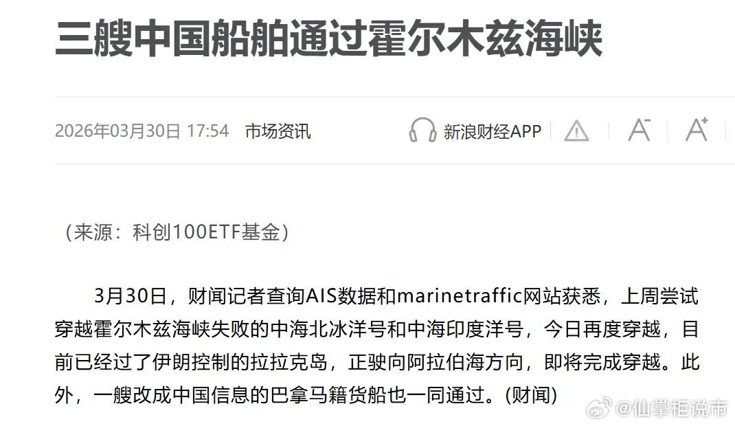 3、再说一个利好消息,三艘中国船舶通过霍尔木兹海峡;