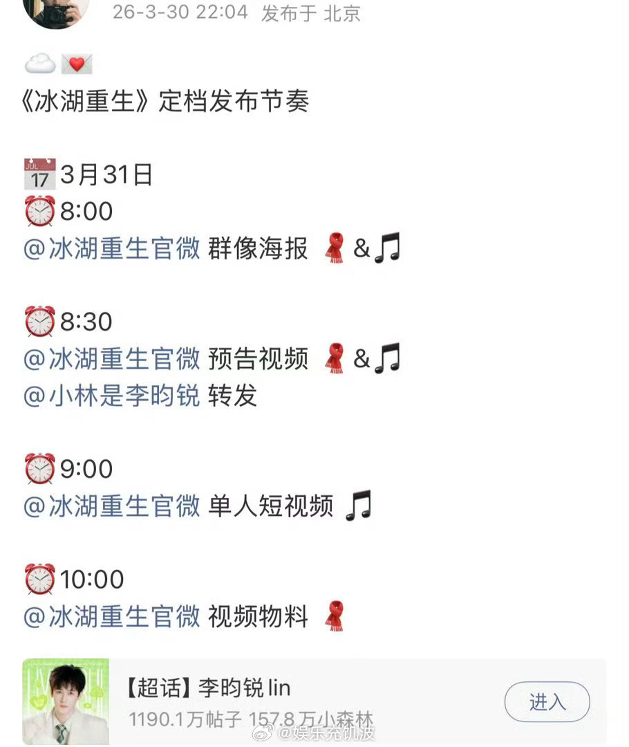 冰壶重生物料发布节奏冰壶重生发布节奏李昀锐、黄杨钿甜、张康乐主演的《冰湖重生》定档发布节奏🈶