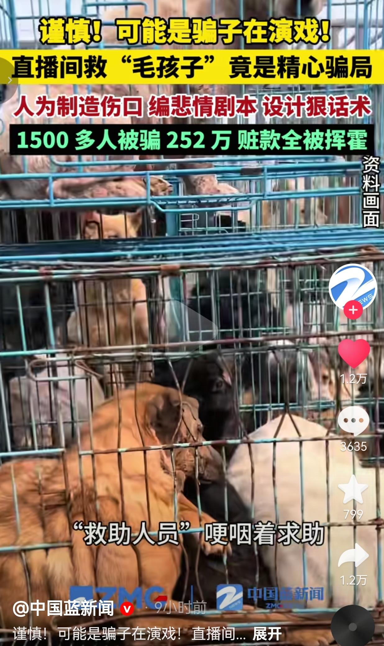 见过骗钱的,没见过拿小动物的命来骗钱的!这群主播为了流量和利益,简直没有人性,为了钱什么底线都敢踩! 他们先买来健康的猫狗,故意饿到它们瘦骨嶙峋、毛发打结,甚至用刀具在身上划出血口,伪装成流浪动物的凄惨模样。 然后在直播间里装模作样、声音哽咽地编剧本:“再凑不齐粮食,它们就要撑不下去了!”“这只小猫快不行了,求大家捐点钱救救它!” 更恶心的是,他们还在商品橱窗挂着“助力毛孩子”的纸巾、梳子等小商品,标注“帮助狗狗们,好人一生平安”,用带货加捐款的双重套路收割爱心。 屏幕前的爱心人士看着这些可怜的毛孩子,心软得一塌糊涂,纷纷下单、慷慨捐款。可谁能想到,这些钱根本没花在猫狗身上! 1500多人被骗走的252万,几乎全被这群骗子拿去挥霍,真正用在小动物身上的少得可怜。 那些被他们刻意折磨的猫狗,有的在痛苦中死去,有的继续被当成圈钱工具,反复遭受伤害。 直到警方介入调查,这场精心策划的骗局才彻底被戳穿,《方圆》杂志也公开发文揭露了这群人的恶行! 网友看完气炸了,有的网友说:我以前还给这种直播间捐过钱!现在想想真恶心!拿小动物的命骗钱,这群人迟早遭报应! 也有的网友说:故意划伤口、饿到生病?这哪是骗钱,这是虐待动物!必须重判! 还有的网友说:1500多人被骗252万!这些骗子把我们的善良当韭菜割,太缺德了! 也有的网友说:消费爱心、虐待动物,这种主播必须永久封禁,严厉惩处! 这群骗子太恶毒了!他们精准拿捏了人们的善良,用最残忍的手段折磨小动物,把它们变成吸金的工具。 那些在直播间里流下的眼泪、捐出的钱,最后都变成了骗子挥霍的资本,而那些毛孩子,却在角落里忍受着饥饿和疼痛。 更让人寒心的是,他们还在直播间里装出一副“爱心人士”的样子,把自己包装成拯救流浪动物的英雄,背地里却干着最肮脏的勾当。这不仅是诈骗,更是对所有善良人的践踏,是对生命的漠视! 那些轻易相信这种“悲情直播”的爱心人士也该醒醒了:善良不是盲目的,别让你的好心,变成了骗子伤害小动物的帮凶! 消费善良的人,终将被善良唾弃;虐待生命的人,终将被法律严惩。 这场骗局不仅骗走了252万,更透支了人们对公益的信任,让真正需要帮助的流浪动物,失去了被拯救的机会。中国蓝新闻也提醒大家:公益救助一定要擦亮眼睛,转发提醒身边人别再上当! 最后,我想说的是:别让你的善良,成为骗子伤害生命的刀!爱心可以给,但一定要给值得的人!