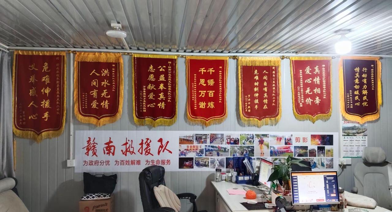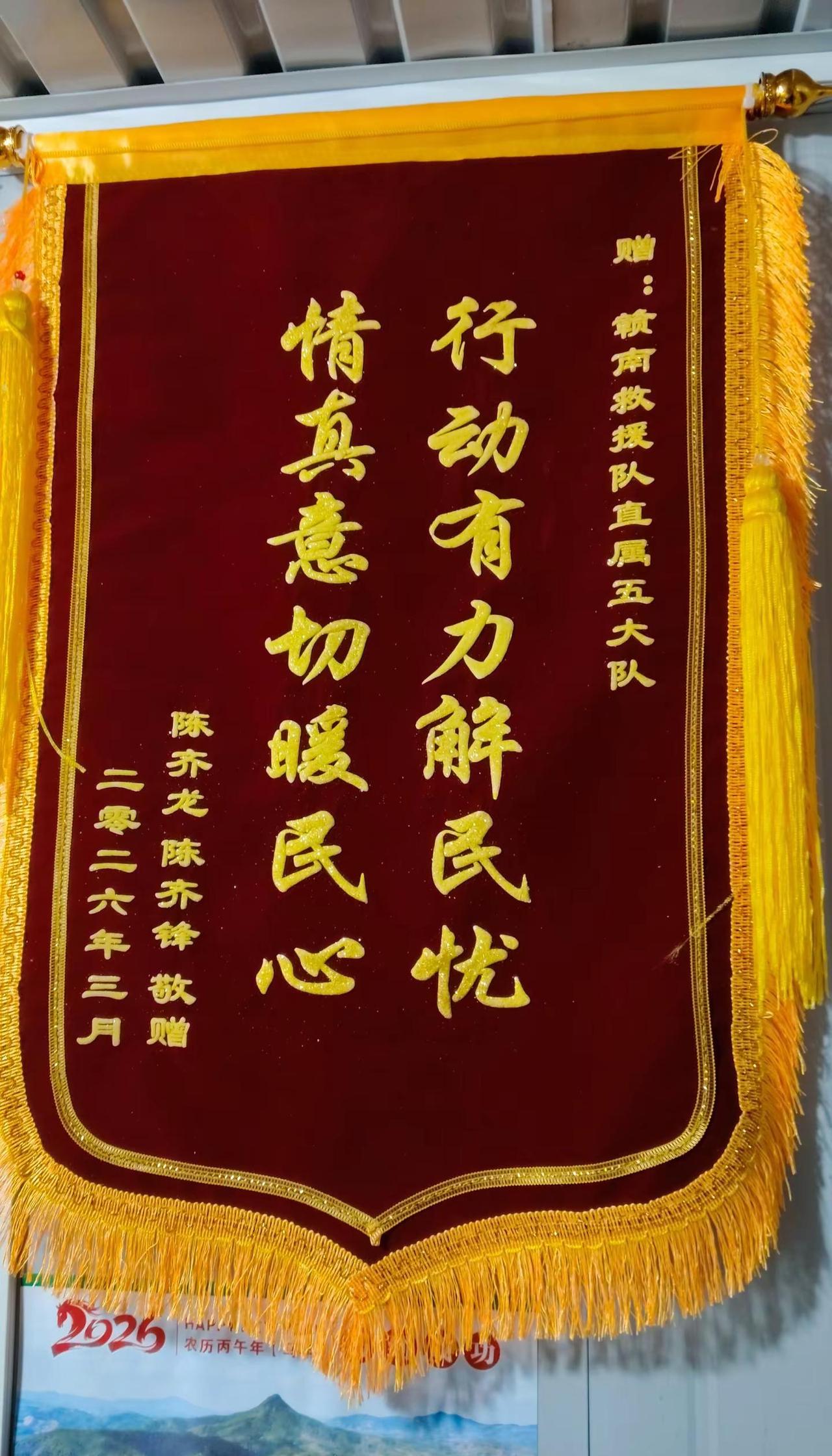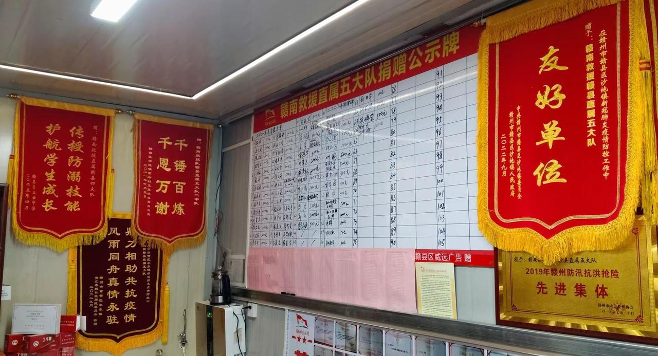 感谢刘文英老奶奶家属对赣南公益救援队直属五大队的认可送来锦旗和慰问并捐款600元用以队部救援经费。