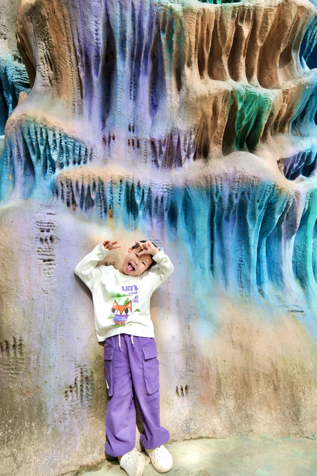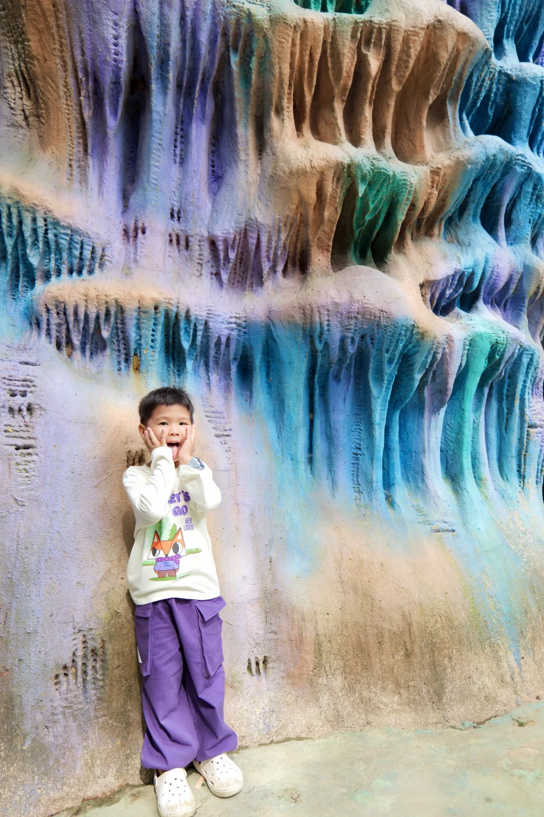 📌tips:到天子溶洞入口处便降温十几度,所以提前给娃带了新买的秋装,刚好是今年流行的紫色,来自男生女生Heylads的幸运狐系列,每次逛街逛到他家都会给孩子买上几件,设计感强又不失童趣,面料软糯、透气舒适,很适合我们这种经常去户外玩的家庭,店员每次还会给娃小礼物陪娃玩耍,难怪木木大佬喜欢逛他家~