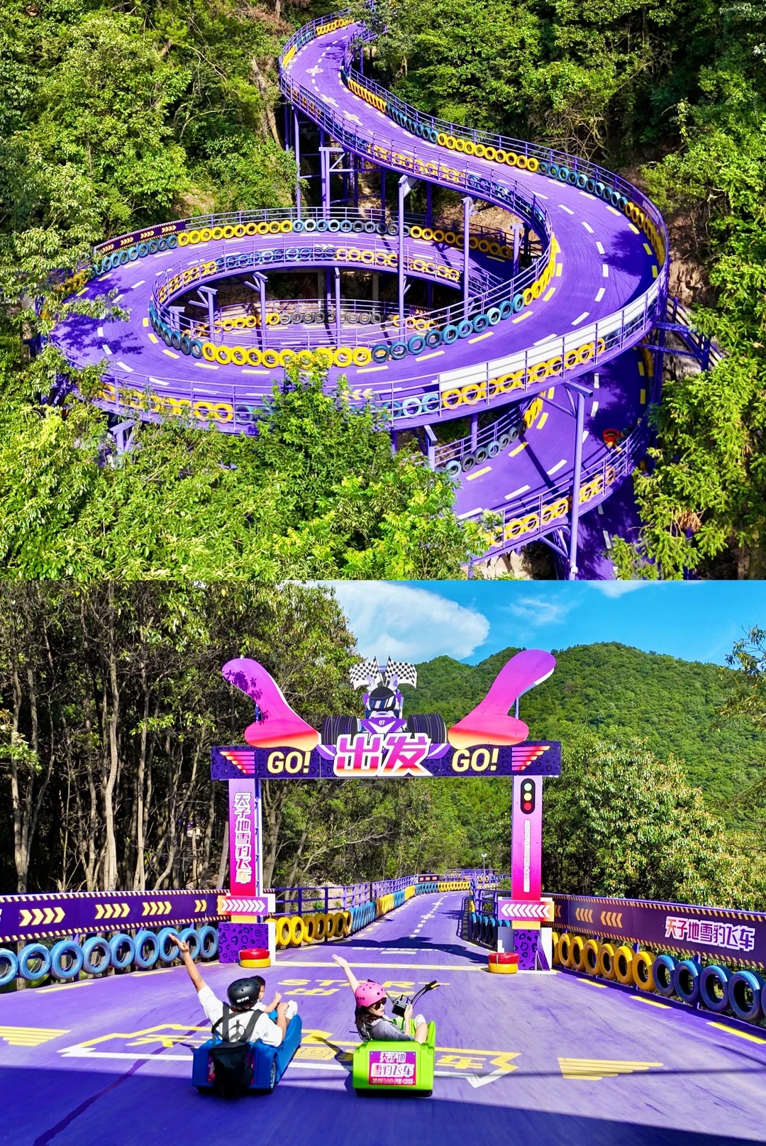 🟣被梦回童年的扣扣飞车刷屏,于是带娃直冲杭州,在做好攻略得知天子溶洞特别凉快,新买的秋装可以安排上啦,还是同款酷炫紫色!