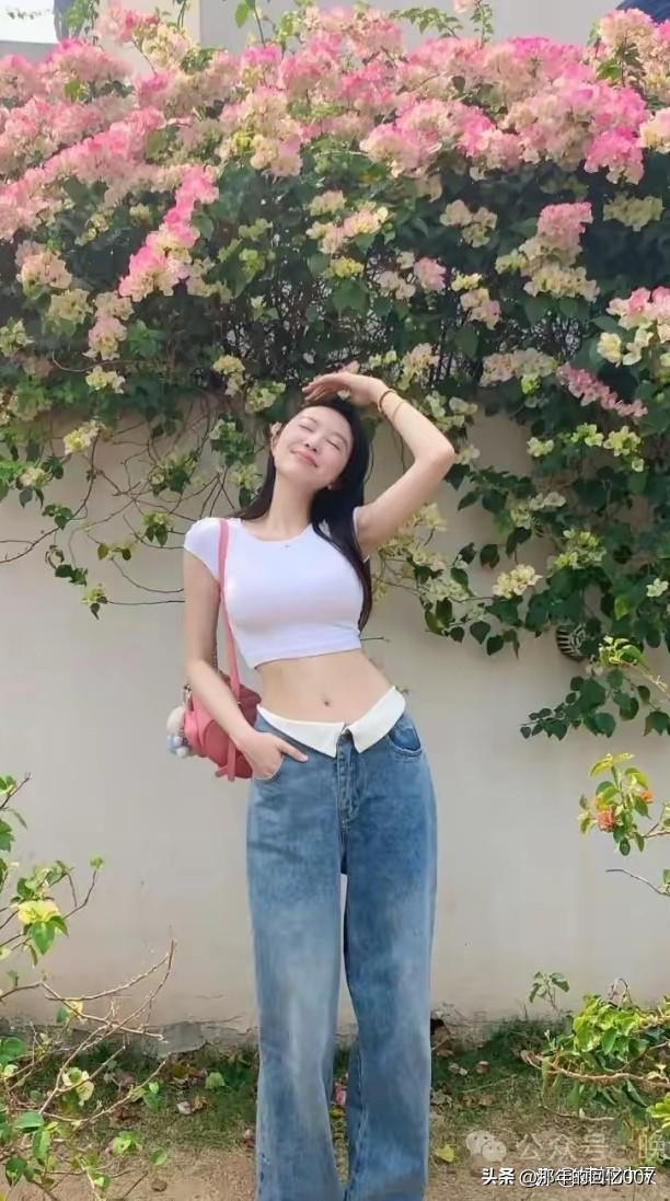 夏日清新穿搭,白色短款上衣+牛仔裤,搭配粉色包包,元气满满!🌸💕解决孤独的最