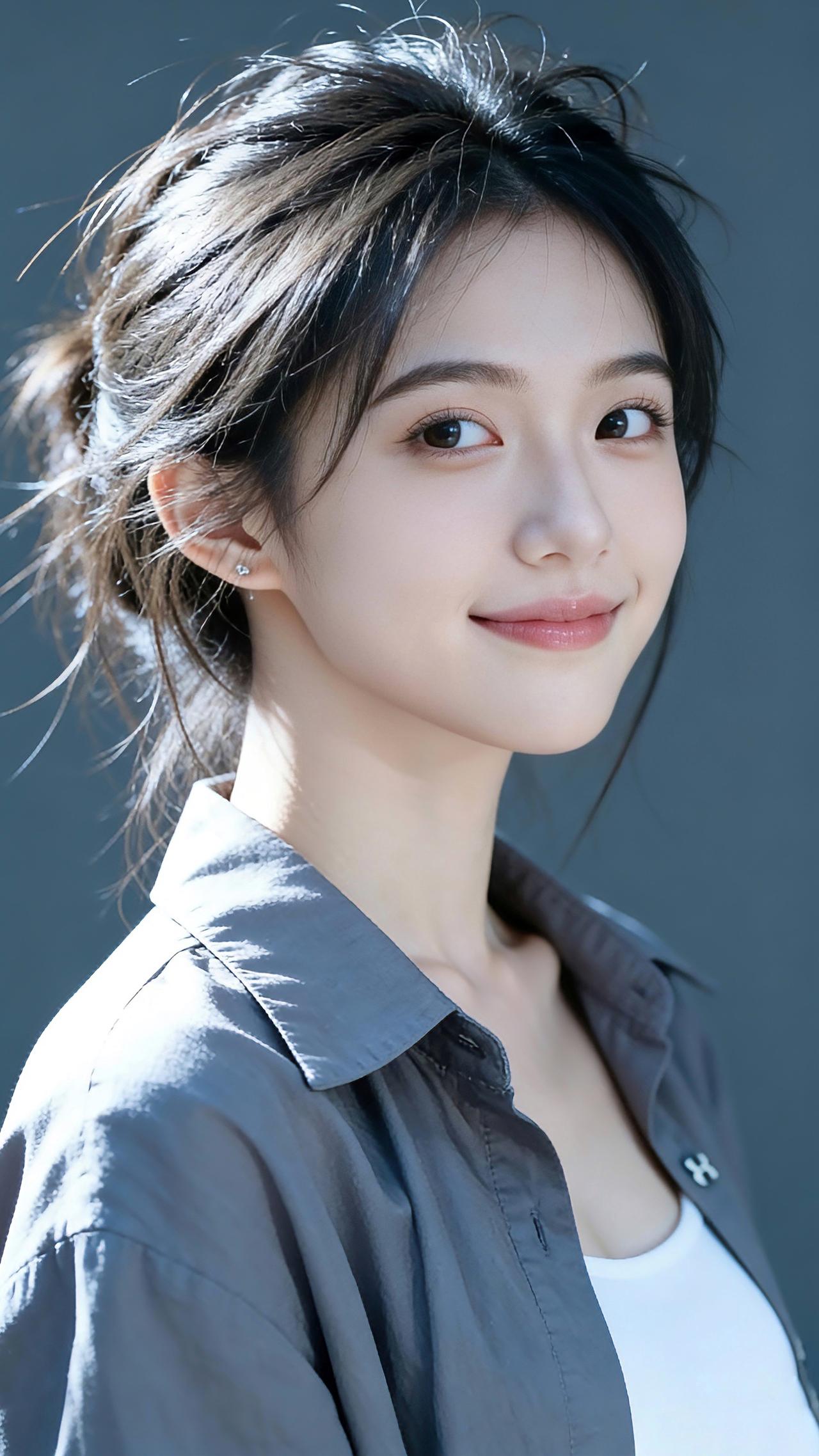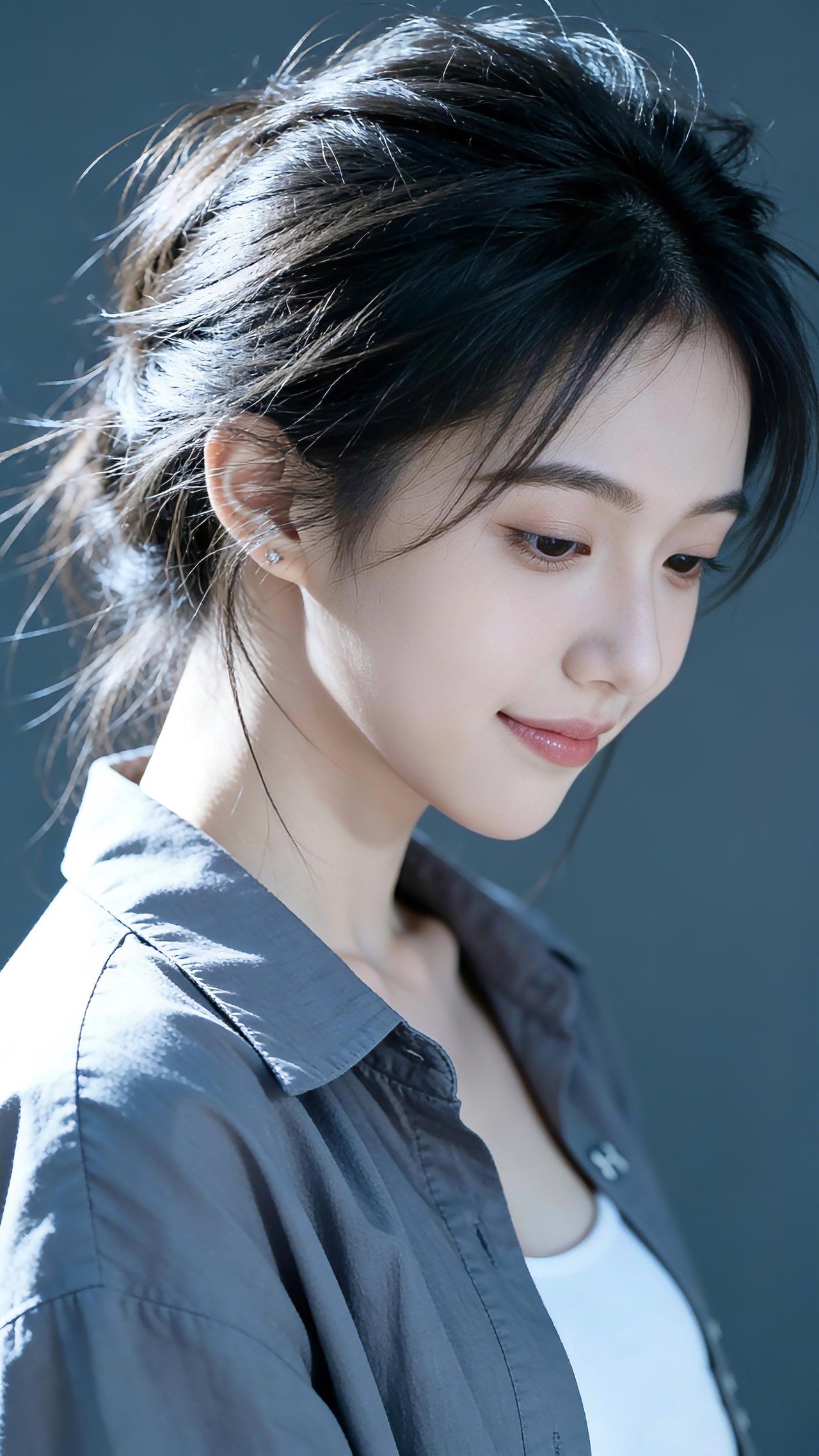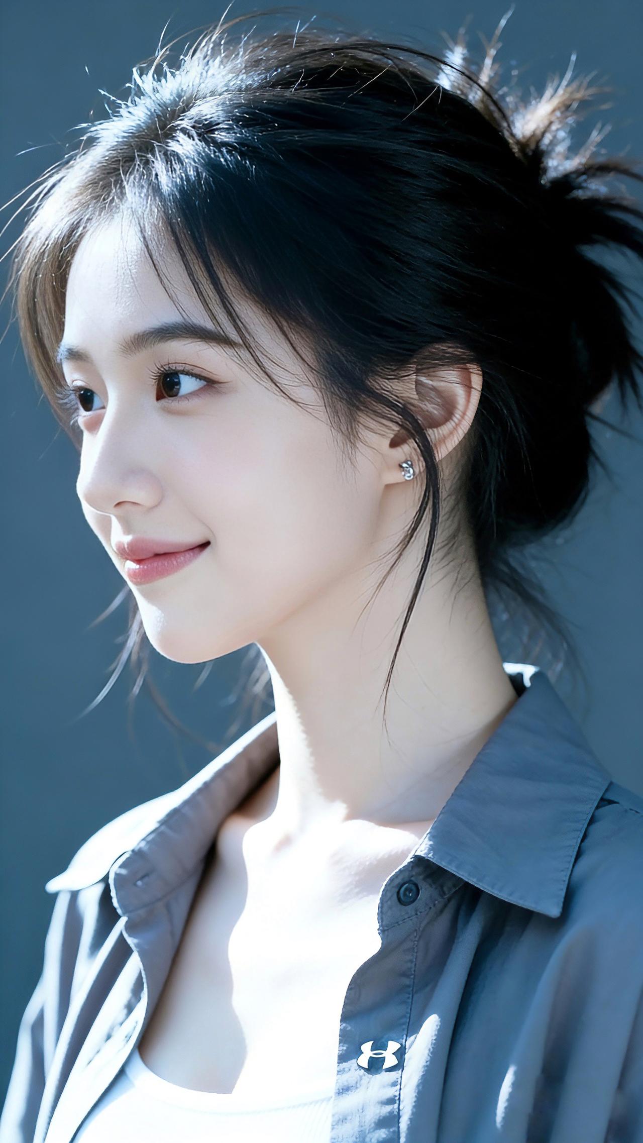九帧同绘侧颜温婉仙!乌发束挽散碎发,灰衬衫敞领衬雪肌。眉眼低垂含笑,唇角浅扬似春风。柔光吻过发丝,纯灰背景织静谧。这东方温婉气,直戳心尖发颤! 图片为A l辅助完成,请注意甄别!