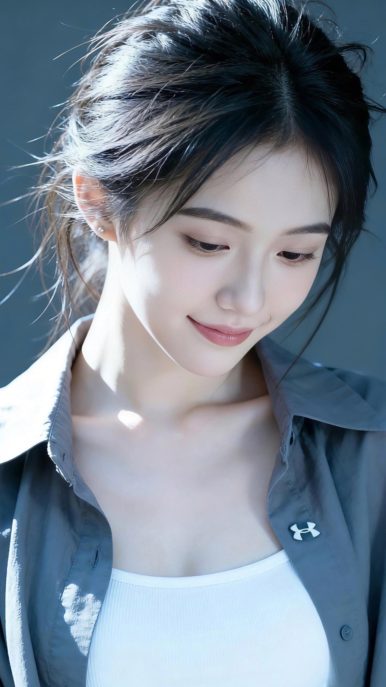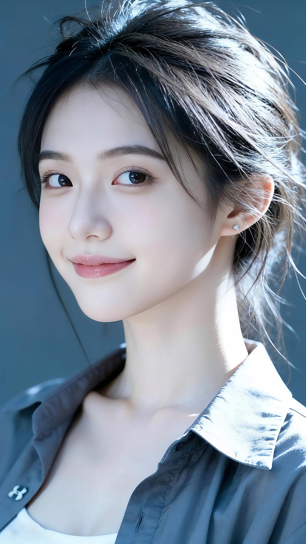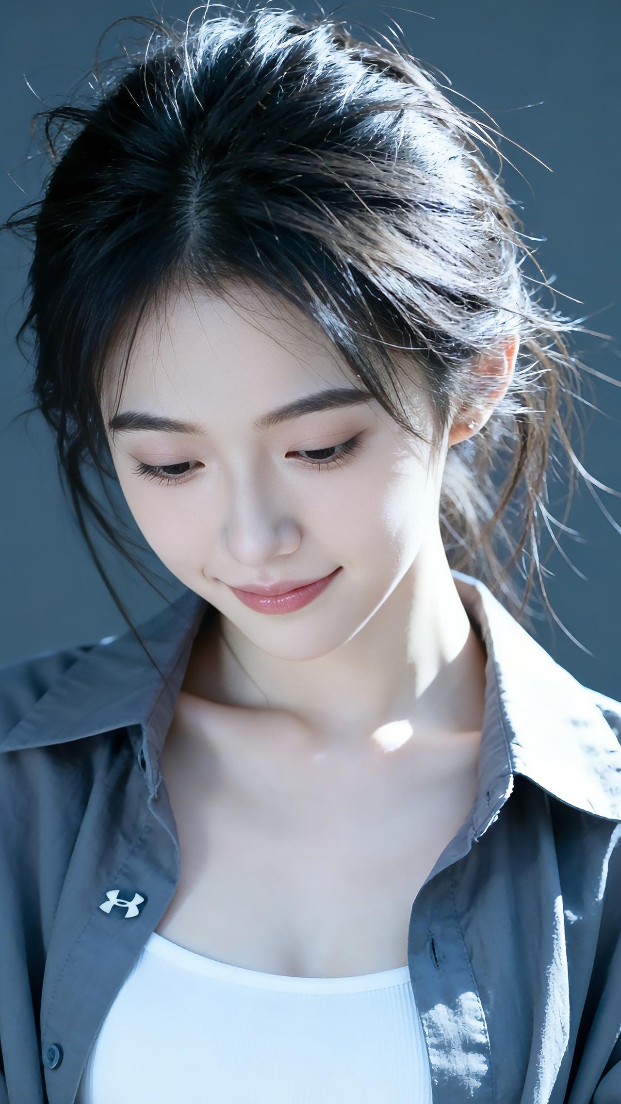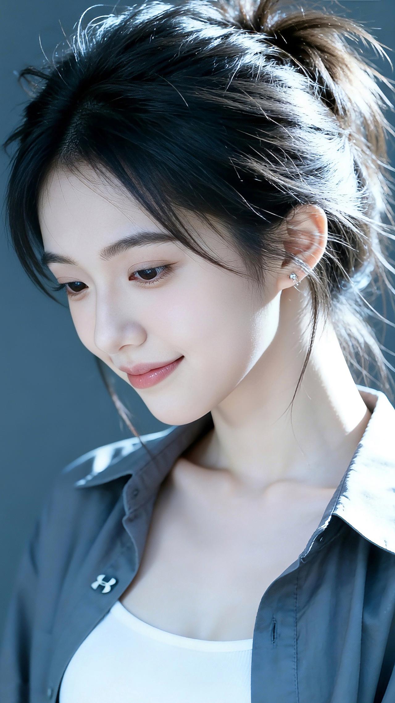 九帧同绘侧颜温婉仙!乌发束挽散碎发,灰衬衫敞领衬雪肌。眉眼低垂含笑,唇角浅扬似春风。柔光吻过发丝,纯灰背景织静谧。这东方温婉气,直戳心尖发颤! 图片为A l辅助完成,请注意甄别!