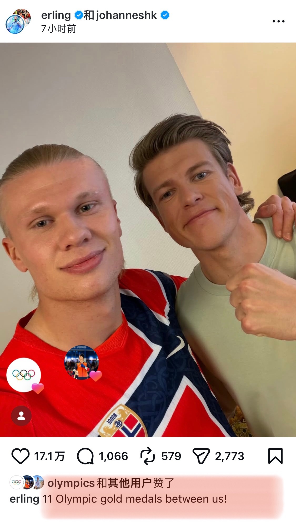 是的,我们仨(我 + 哈兰德 + 克莱博)一共获得了11枚奥运金牌🏅️