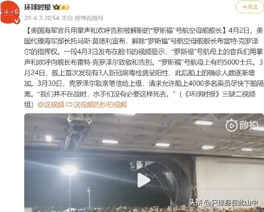 福特航母战斗群5700官兵被扣押,接受调查 福特航母群停靠希腊克里特岛苏达湾接受维修。随后派8人专项小组登舰,对全体舰员进行逐一排查。另外把其他三艘驱逐舰的也软禁起了,看来这次营啸不简单啊。 8人调查组对5700余人问询,按2人一组计算,这要问到什么时候?我数学不好,算不出来。 上要防空,下要防雷,厕所要防堵,洗衣还要防火 ,福特表示很累。。。 美国航母选择题: A.厕所堵了 B.洗衣房烧了 C.弹射器坏了 D.航母哗变了