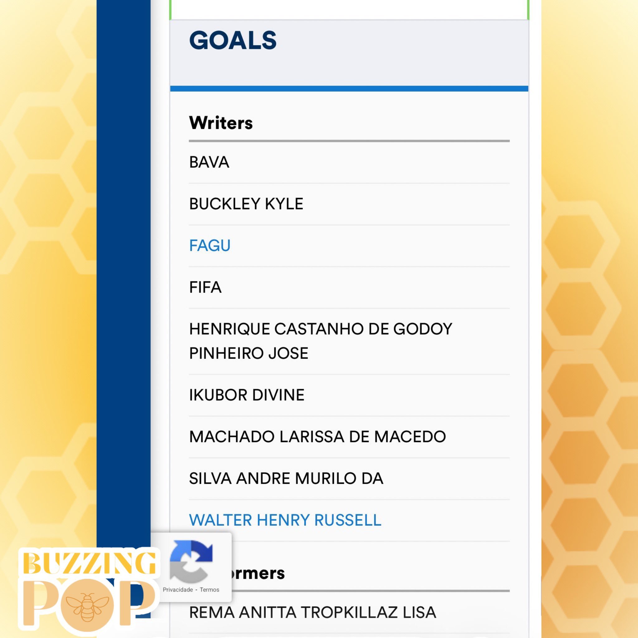 一首名为《GOALS》的新歌现已注册,据传这首歌可能是为国际足联(世界杯)创作的,网站显示该歌曲由Lisa、Anitta、Rema 和Tropkillaz共同演唱⚽我靠啊接接接🤩🤩