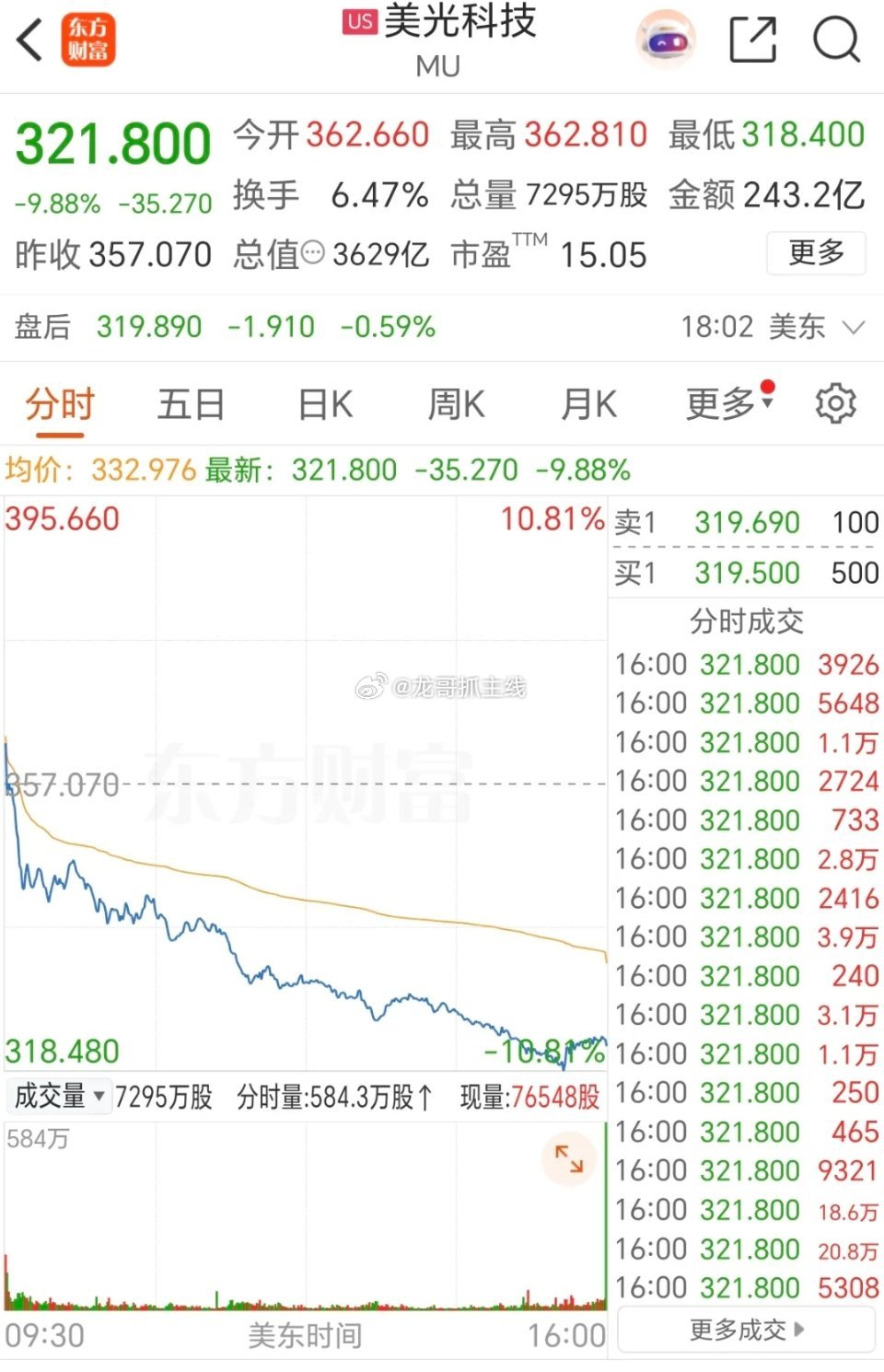 3.30晚间,美股存储芯片龙头,美光科技开盘后一路下跌,收盘跌停近-10%。今天科技股,尤其是存储芯片可能承压。