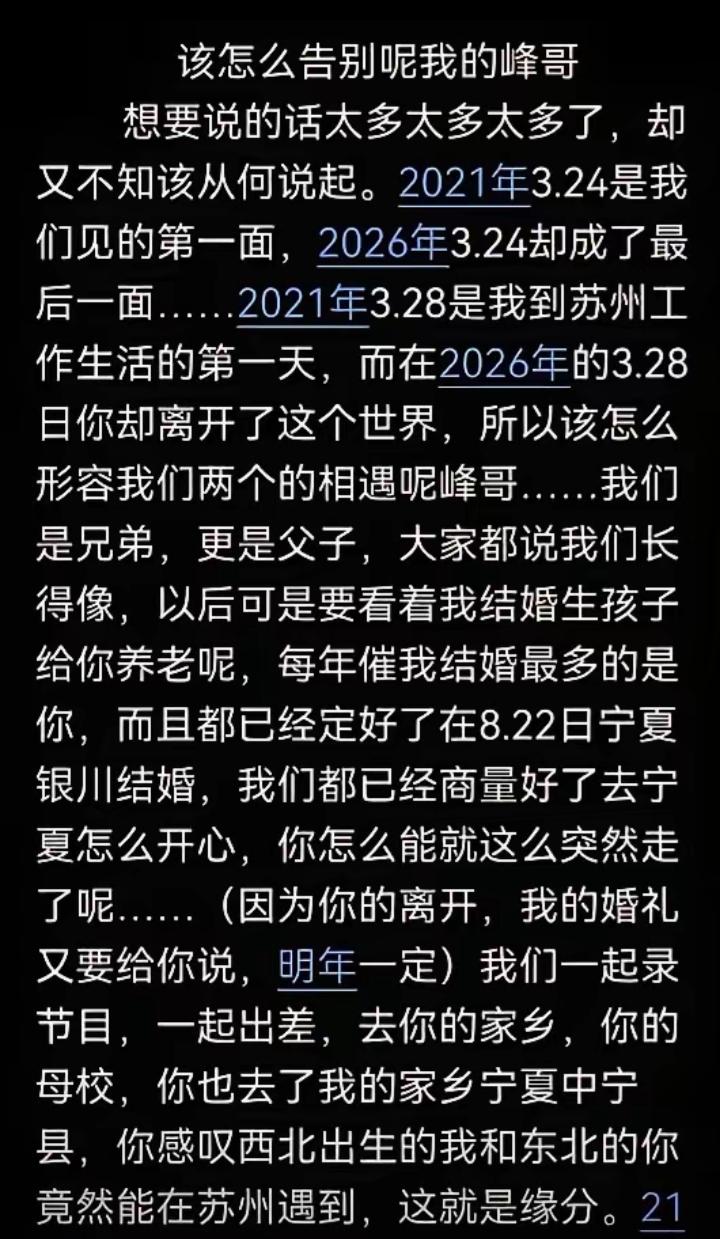 张雪峰头七这天,公司总经理武亮发布长文悼念,字字句句都让人破防。他说和张雪峰是兄弟,更是父子,还约好了8月份去宁夏银川看着他结婚,没想到张雪峰老师怎么突然就走了呢,让他非常难过。 武亮不仅公开了公司后续运营安排,更郑重规划了张雪峰11岁女儿张姩菡的未来,还细心擦净保存好张雪峰生前常骑的电瓶车,留住这份念想。 张雪峰生前最放心不下的就是一手创办的公司和年幼的女儿。武亮承诺,完整保留张雪峰所有账号与作品,等孩子长大亲手交付;公司正常运转,待张姩菡成年后完整交由她接手,给了逝者与家人最大的安心。 两人共事五年默契十足,如今武亮扛起重担,保障员工与学员的权益,用责任兑现情谊。这份肝胆相照的守护,既是对挚友的交代,也让无数网友动容,愿孩子平安长大。