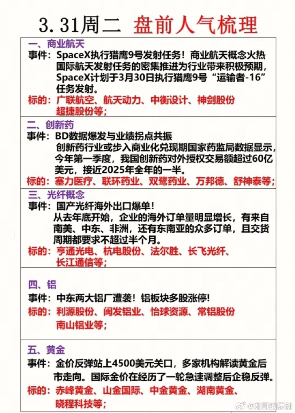 3月31日盘前速览