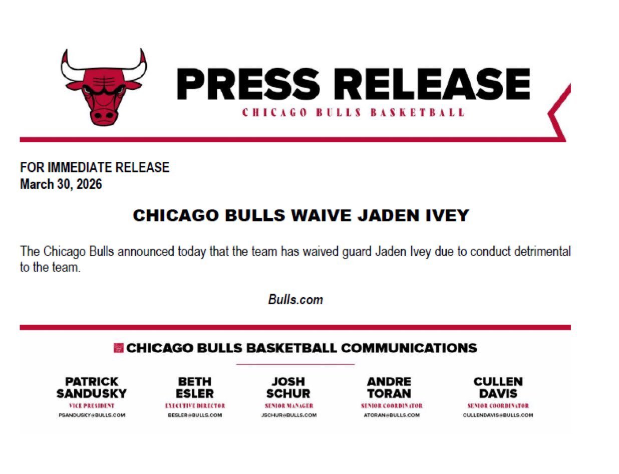 公牛官方:“因有损球队的不当行为,球队已裁掉后卫杰登-艾维。”此前,他在多次针对宗教及其他话题的激烈言论中发表不当言论。