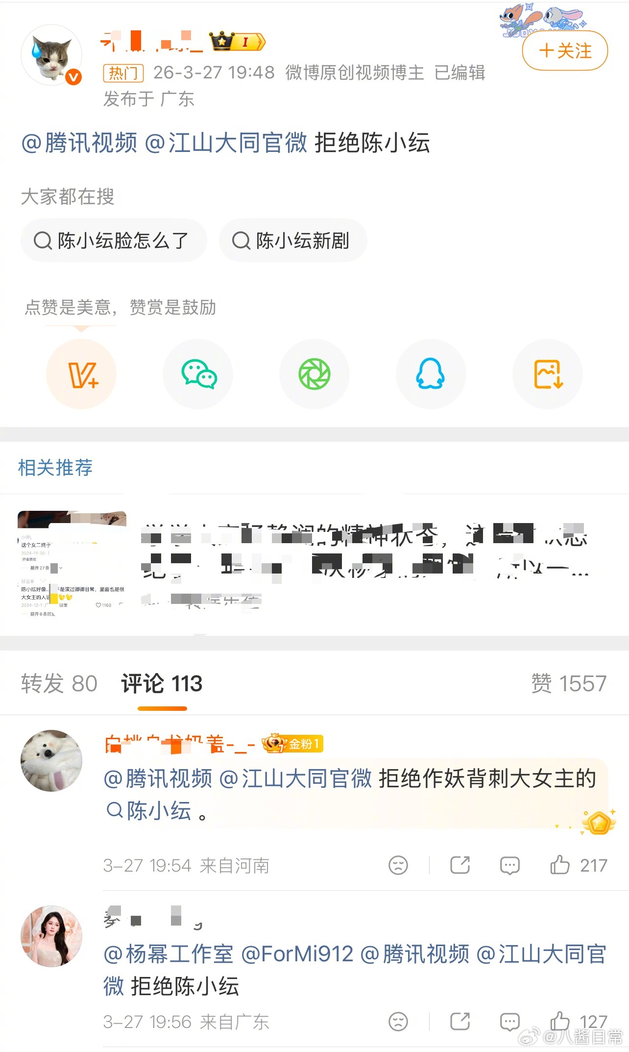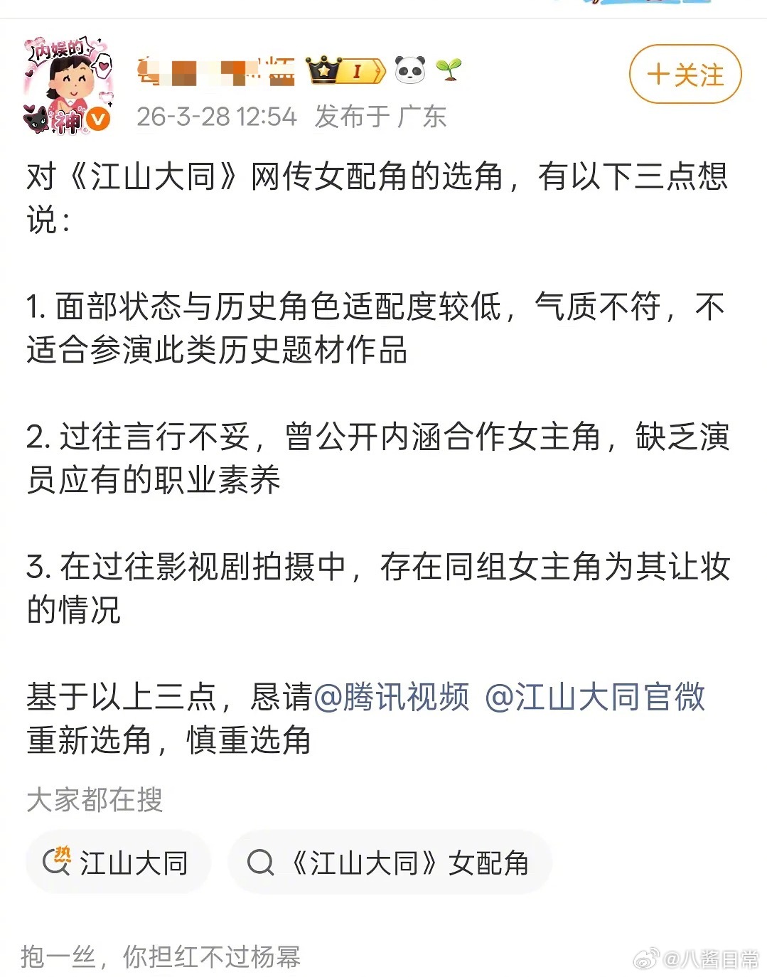 杨幂粉丝拒绝《江山大同》女二陈小纭