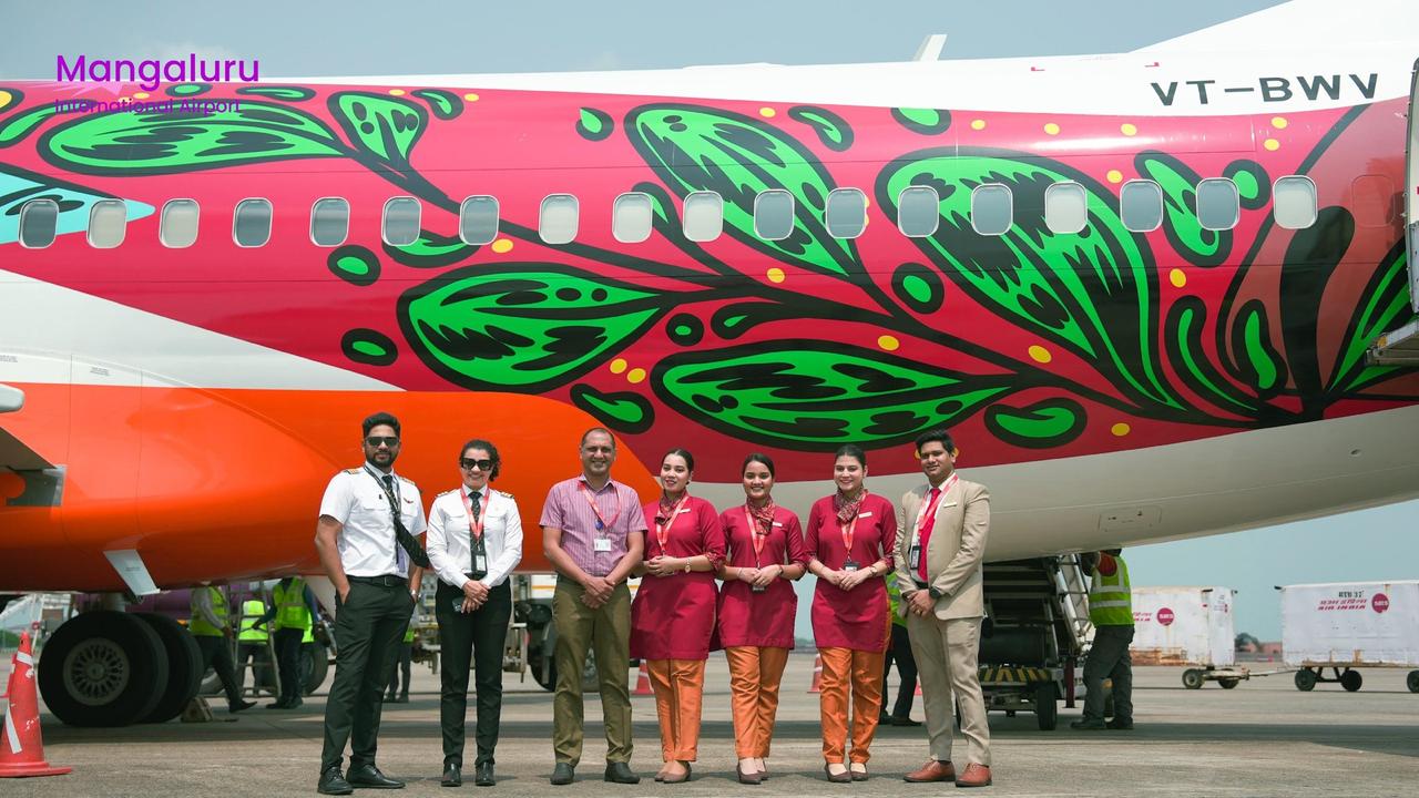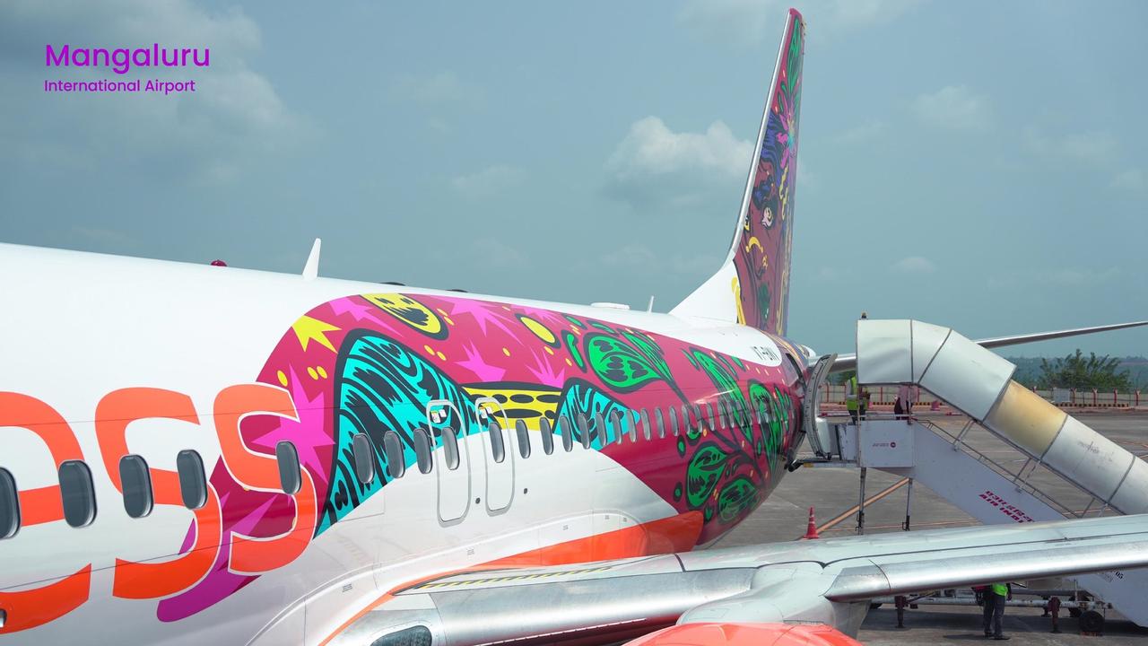 近日,印度快线航空一架特殊涂装航班执飞孟买-芒格洛尔航线,降落在芒格洛尔国际机场