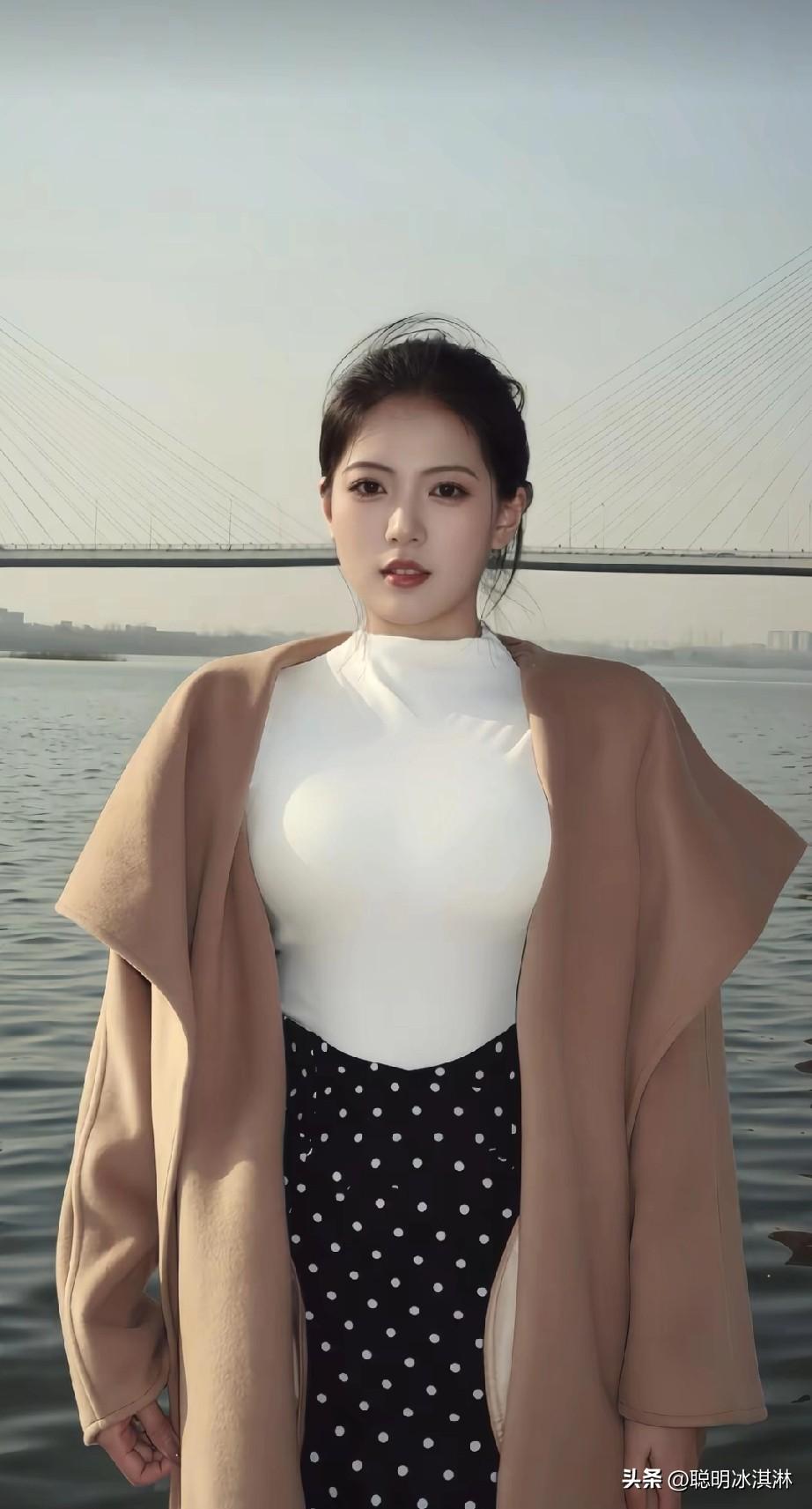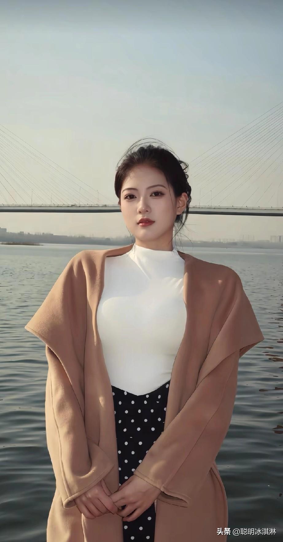 优雅白衣少女,漫步在江边,感受微风拂面。