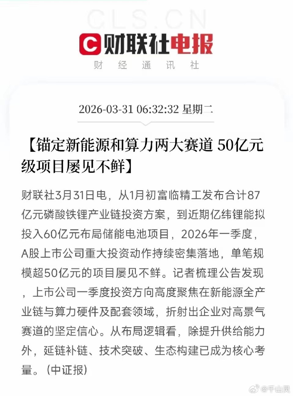 半导体涨价、新能源砸钱,锂电真的要回归了?早上刷到两条消息,放在一起看信号很清晰:一边,半导体行业迎来新一轮涨价周期,存储芯片率先上涨,模拟芯片、功率器件、晶圆代工全线跟涨,行业正式从去库存转向量价齐升;另一边,今年一季度上市公司大额投资密集落地,单笔超50亿项目频现,资金高度集中在新能源全产业链、算力硬件及配套领域。半导体涨价印证需求回暖,企业砸钱彰显长期信心,两大信号共振,科技赛道大概率要重新热起来。一、半导体涨价,周期反转已现这轮涨价逻辑很直接:前两年行业深度去库存,厂商砍产能、压价格,如今库存基本出清,下游需求全面回暖。AI服务器、新能源汽车、消费电子全线拉货,供给端修复滞后,价格自然水涨船高。存储芯片是先行风向标,三星、海力士、美光集体控产能,DDR5连续多月上涨;如今涨价蔓延至模拟芯片、功率器件,意味着行情从单点扩散至全行业。对上游半导体企业而言,是实打实的利润修复;对下游厂商来说,则要直面成本上行压力。二、锂电悄悄回归,逻辑早已变天不止半导体,锂电赛道也悄然回暖。去年锂价走出深V反转,上半年持续下跌,下半年储能需求爆发带动价格强势反弹。天齐锂业、赣锋锂业相继扭亏为盈,融捷、盐湖等矿企利润大幅回升,有矿资源的企业率先走出周期底部。这轮回暖并非简单反弹,而是需求结构重构:过去锂电靠电动车单打独斗,如今储能成为新增长引擎。2025年全球储能电池出货量增速超70%,远超电动车,瑞浦兰钧等厂商凭借海外户用储能实现盈利,二线品牌也迎来转机。三、新能源疯狂砸钱,长期逻辑不变一季度上市公司大额投资,几乎都涌向新能源与算力:富临精工87亿布局磷酸铁锂,亿纬锂能60亿加码储能,百亿级项目接连落地。企业并非盲目扩产,更多是延链补链、技术突破、构建生态,即便行业内卷,头部企业依旧坚定投入,看好储能、电动车、光伏的长期空间。算力硬件同样是重头戏,AI带动的算力需求是长期基建逻辑,光模块、服务器、数据中心的投入将持续多年,业绩支撑充足。四、给投资者与普通人的参考- 半导体:周期底部反转,上涨节奏偏缓,适合定投布局,不适合追高- 锂电:核心看资源+储能,手握矿权、绑定储能订单的企业更具优势- 算力:AI刚需驱动,属于长期赛道,业绩确定性较强对普通人而言,半导体涨价或推高手机、电脑售价;锂电回暖将稳住电动车、储能产品价格;算力持续投入,则会让AI更快渗透生活与工作。
