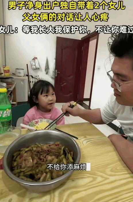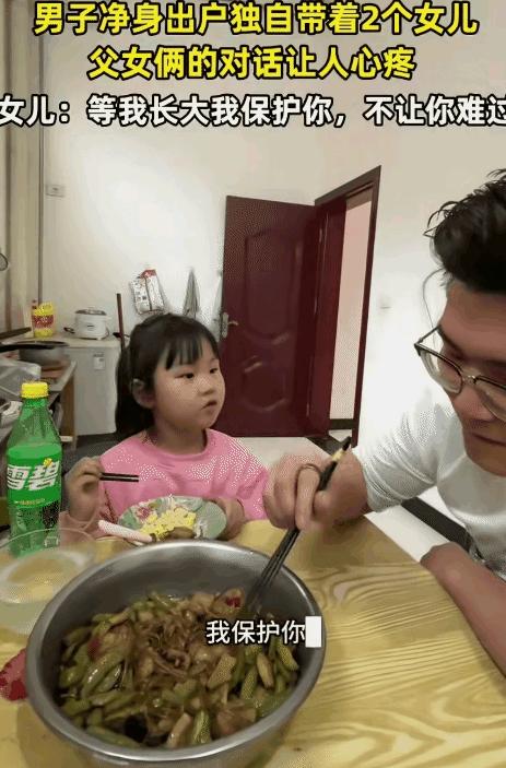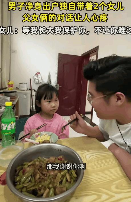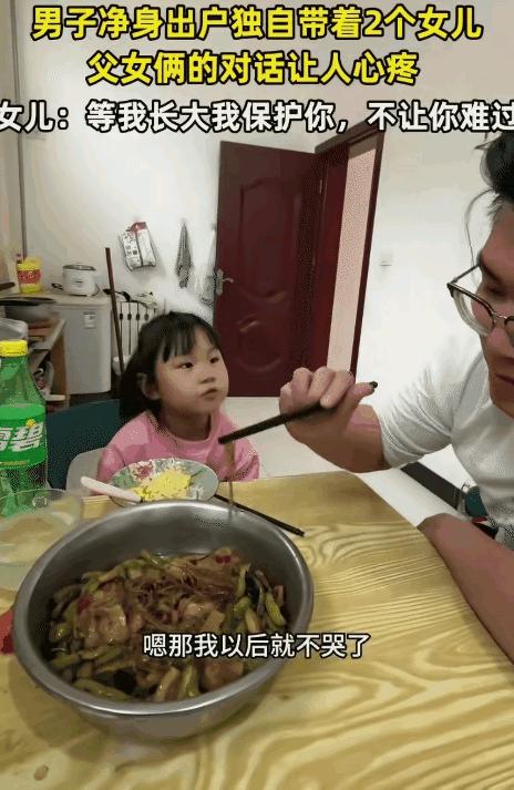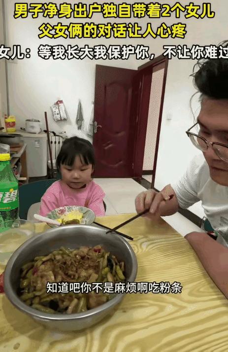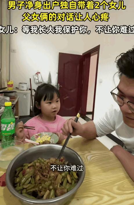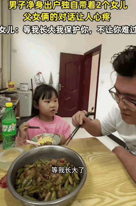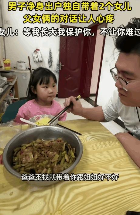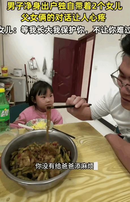 泪目了,山西,男子净身出户,独自带着两个女儿。突然,小女儿问他:“爸爸,你会找新妈妈吗?”他说:“爸爸不找,就带着你和姐姐,好不好。”小女儿说:“等我长大了,我保护你,不让你难过。” 镜头里的中年男人,他坐在一张木桌前,手里攥着筷子,往嘴里扒着饭菜。 他对面的小丫头,扎着个马尾辫,眼睛一眨不眨的盯着面前的父亲。 这短短十几秒的模糊视频背后,藏着这个男人多大的勇气和决绝。 前阵子,男子刚和妻子办理了离婚手续。 为了能把两个闺女的抚养权牢牢握在自己手里,他半分没犹豫。 既没去争那套住了多年的房子,也没索要一分存款,家里但凡能值点钱的物件,全都留给了女方。 说白了,就是干干净净地净身出户,没带走一点东西。 最后,他一手牵着大闺女,一手抱着小闺女,头也不回地走出了那个曾经有过欢声笑语、如今却只剩冷清的家。 这事传开后,身边的亲戚朋友没一个不劝他的,都说他做事太冲动,压根没给自己留半点退路。 但是他却觉得,钱没了可以再挣,房子没了可以再租,苦点累点不算啥只要能天天陪着俩闺女,看着她们平平安安长大,就心满意足了。 大女儿虽然年幼,但比同龄孩子懂事太多。 每天早上,不用爸爸催,自己就能起床、洗漱、背上书包。 有时候还会学着给爸爸煮一碗面条,哪怕煮得有点硬,他也吃得干干净净,心里暖得不行。 小女儿年纪小,离不开人,不管爸爸去哪儿,都跟在身后,像个小尾巴。 爸爸在家收拾屋子,她就拿着个小抹布,学着爸爸的样子擦桌子,还会奶声奶气地说:“爸爸,我帮你干活,你就不用那么累了。” 那天晚上,晚饭依旧简单得不能再简单。 男人安安静静地吃着,偶尔夹一筷子菜。 小女儿却半天没吃一口,眼神时不时地瞟向爸爸,一副欲言又止的样子。 终于,小女儿深吸一口气,鼓起全身的勇气,仰着小脸,用带着点颤抖的声音,问出了藏在心里很久的话:“爸爸,你以后,还会找新妈妈吗?” 这句话,问得小心翼翼,藏着她所有的不安和恐惧。 男人夹菜的手,猛地顿住了。 他缓缓抬起头,目光落在小女儿绷得紧紧的小脸上,清清楚楚地看到了孩子眼底翻涌的慌张,还有那份藏不住的不安。 他没扯那些空洞的大道理,只是格外坚定,一边往女儿的碗里夹菜,一边一字一句地说。 “爸爸不找新妈妈,这辈子我别的什么心思都没有,就守着你和姐姐,踏踏实实地过日子,行不行?” 听到这句话,小女儿的眼睛瞬间亮了。 她努力不让自己哭出声,然后仰起头,用带着哭腔,却无比坚定的语气,跟爸爸说到:“爸爸,我以后再也不哭了,不给爸爸添麻烦。” 听着闺女这稚嫩又懂事的话,男子瞬间红了眼眶,鼻尖一酸,差点没忍住掉眼泪。 他赶紧掩饰自己翻涌的情绪,压下声音里的沙哑,缓缓开口:“你们从来都没有给爸爸添过一点麻烦。” 这段视频被发到网上后,评论区网友们的留言刷都刷不完。 有网友说:“这才是真男人,比起那些争财产、抛孩子的,他把所有温柔都给了闺女,净身出户不是傻,是责任和担当。” 也有网友感同身受留言说:“看哭了,离婚最苦的从来都是孩子,还好这个爸爸拼尽全力护住了她们。”