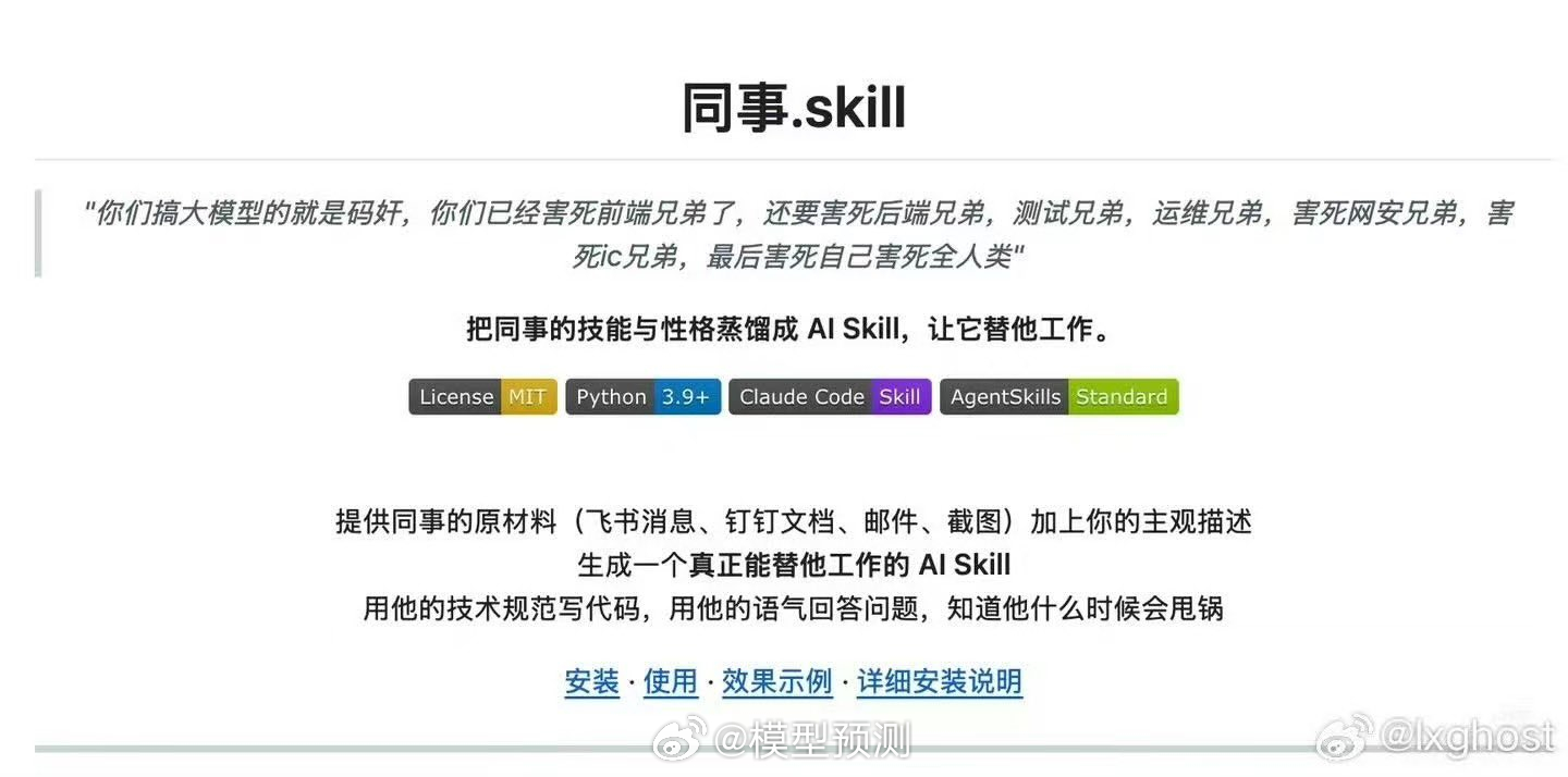 把同事的技能蒸馏成AI技能,然后干掉他。我现在做的就是在蒸馏自己的技能。但我乐在其中。