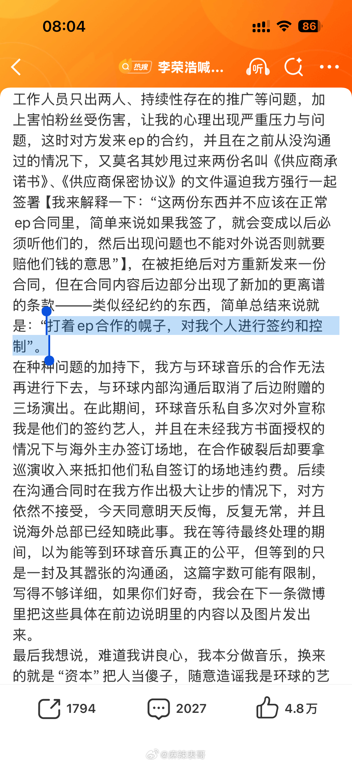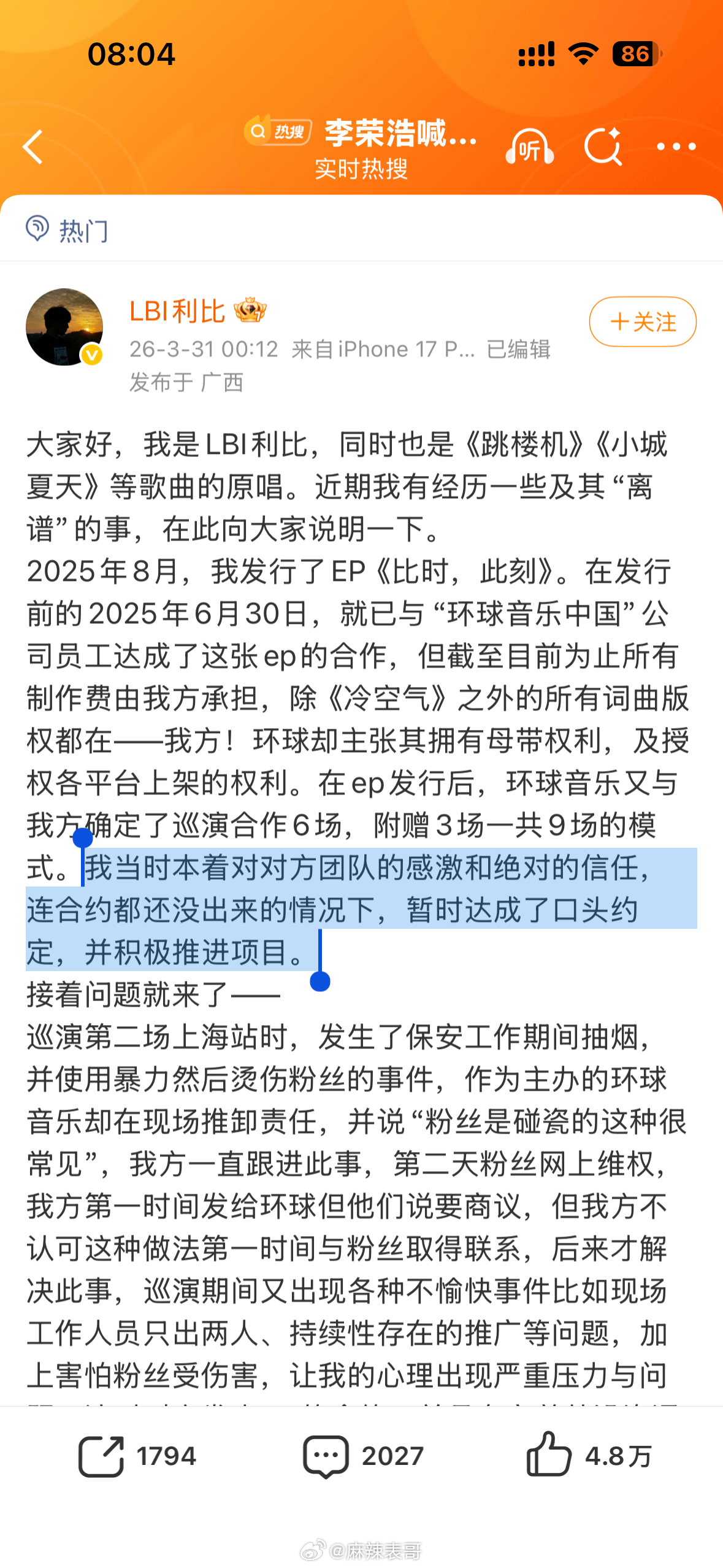 跳楼机原唱利比说实在是忍不下去了控诉环球,打着ep合作的幌子,对他进行签约和控制