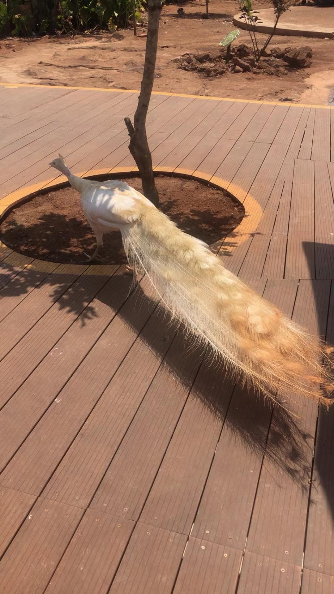 当我看到那只美丽的白色孔雀时,真觉得它像极了一幅刺绣。它洁白的羽毛细腻又有光泽,每一根都像是绣工精心绣上去的丝线,纹理清晰又精致。 它优雅地踱步,展开尾羽的那一刻,宛如一幅徐徐展开的精美画卷。那白色的羽毛错落有致,在阳光的照耀下,泛着柔和的光,好似刺绣上的丝线在闪耀。这画面让我不禁感叹大自然的鬼斧神工,能创造出如此美丽的生灵,就像技艺高超的绣娘绣出的绝世之作,美得让人移不开眼。