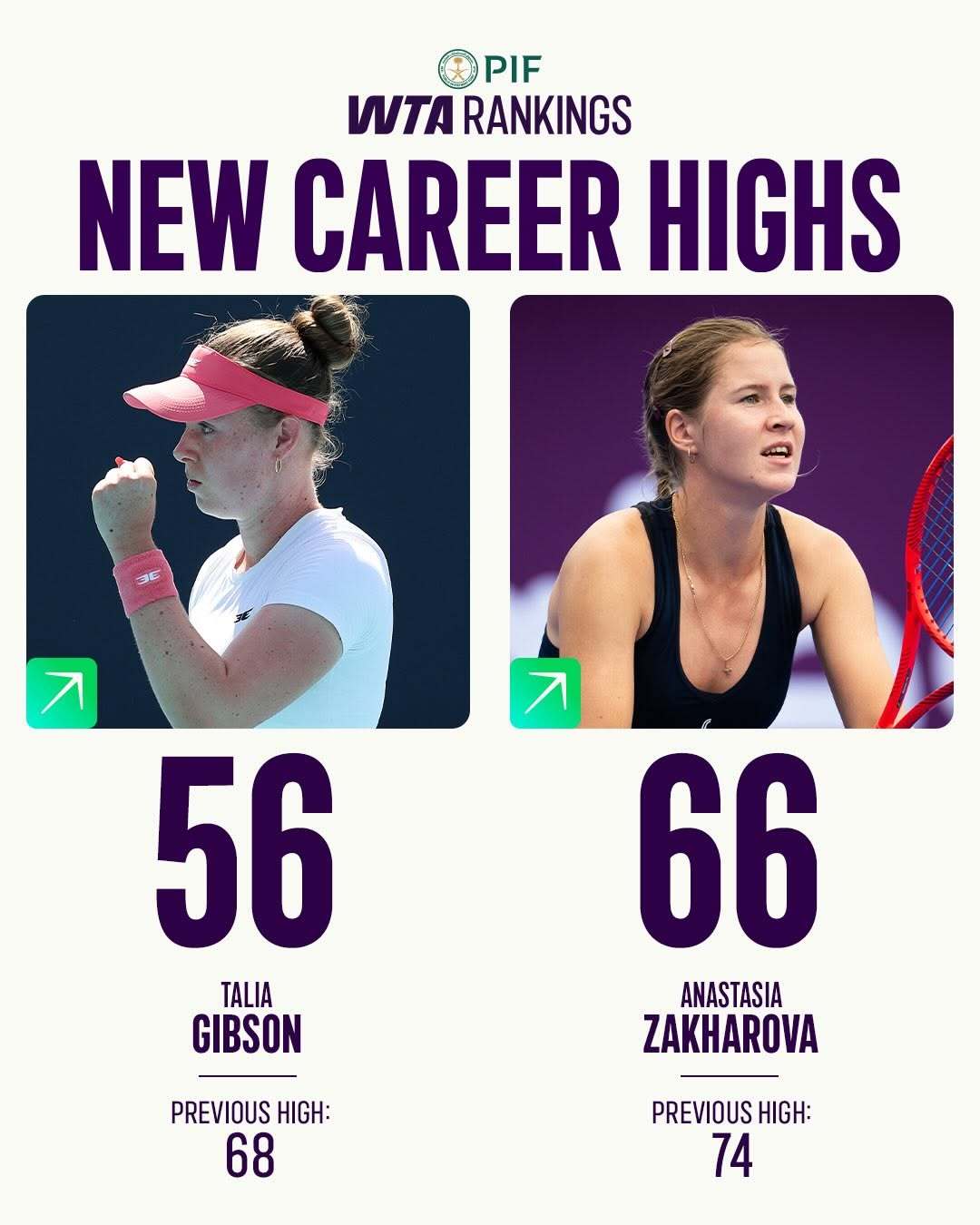 本周以下球员的PIF WTA世界排名创造新高🚀排名观察