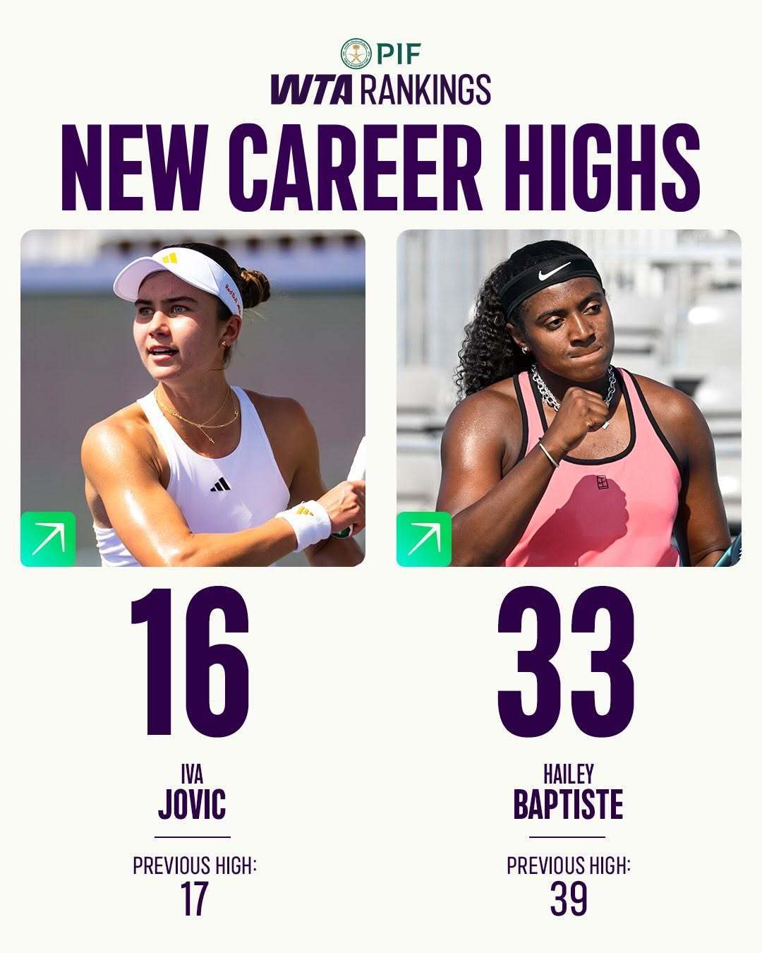 本周以下球员的PIF WTA世界排名创造新高🚀