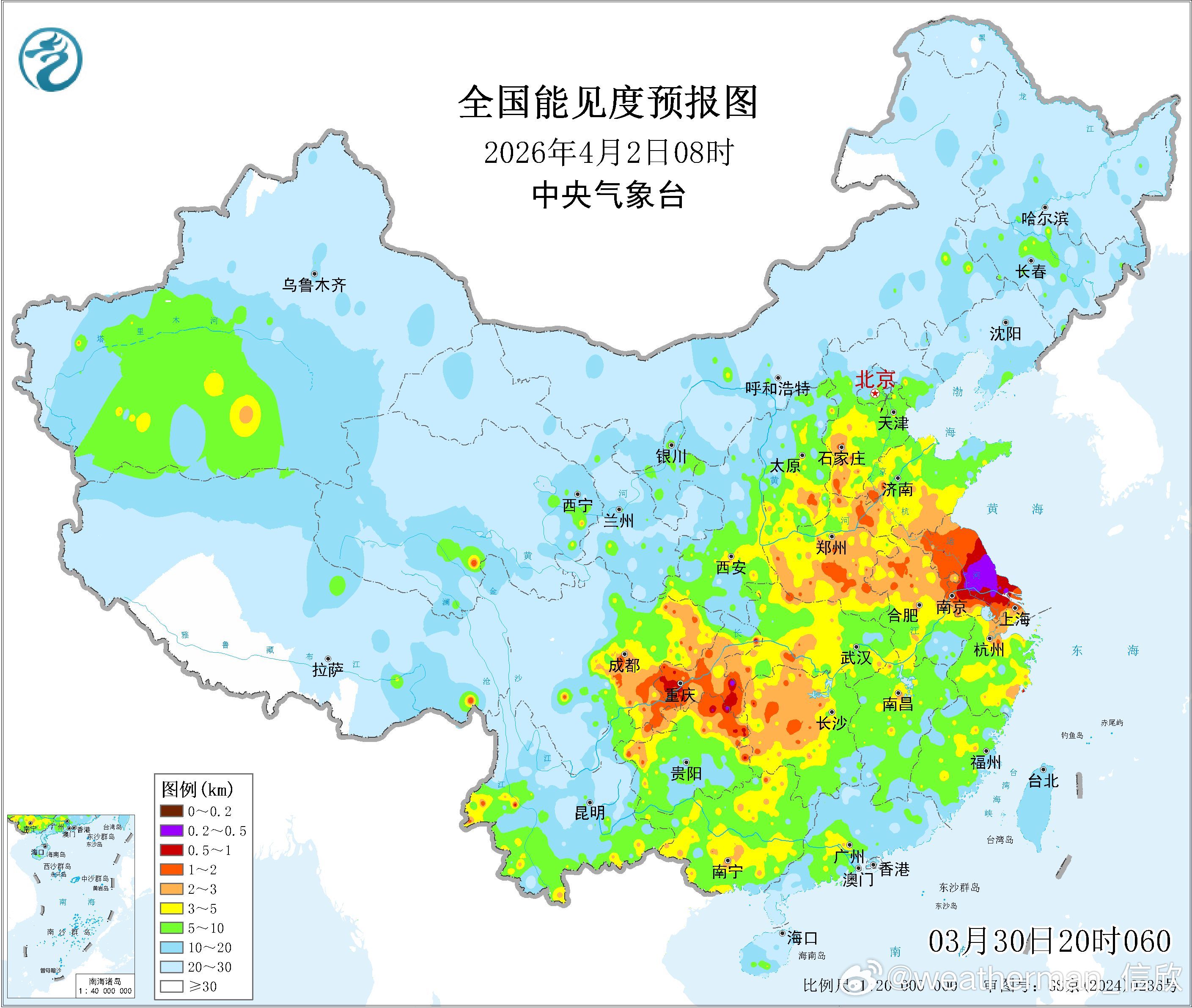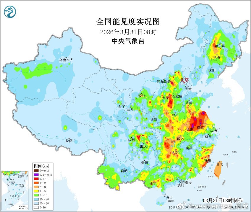 【雾 霾 沙尘】今晨在安徽江苏等地出现成片的雾,此外甘肃、陕西、山西、四川、湖南、湖北、江西也有零散的大雾。8时部分省份能见度最低站点:陕西吴起56米、湖南南岳63米、江西庐山70米、四川蓬安85米、湖北金沙96米、山西安泽145米,以上站点均出现强浓雾。未来2天早晨,苏皖一带以及四川盆地可能还有大雾。