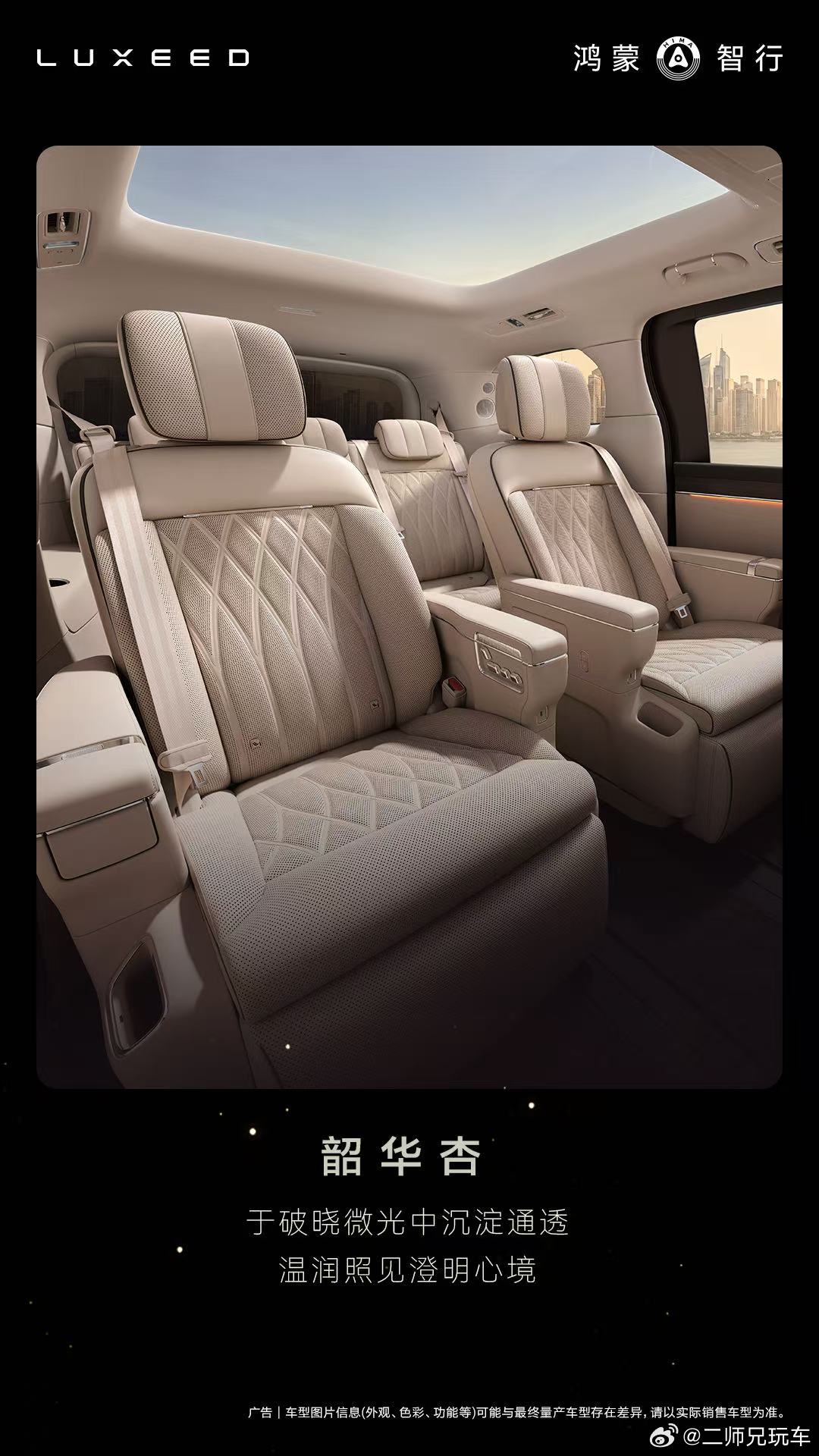 智界V9内饰新色首曝 3月31日,智界V9官宣三款内饰配色:绒霞紫、韶华杏、赤茶橘,灵感来源于破晓微光、正午阳光和傍晚暮色的一日三时光影,满足不同用户的审美需求。作为鸿蒙智行首款旗舰MPV,智界V9将搭载二排旋转座椅,二排既是移动会客厅,也是陆地头等舱,满足商务接待、全家出行等多种场景化需求。据此前爆料,智界V9或将搭载众多首发黑科技配置,堪称“MPV科技车皇”,为50万级高端MPV市场带来颠覆性的价值体验。鸿蒙智行 鸿蒙智行