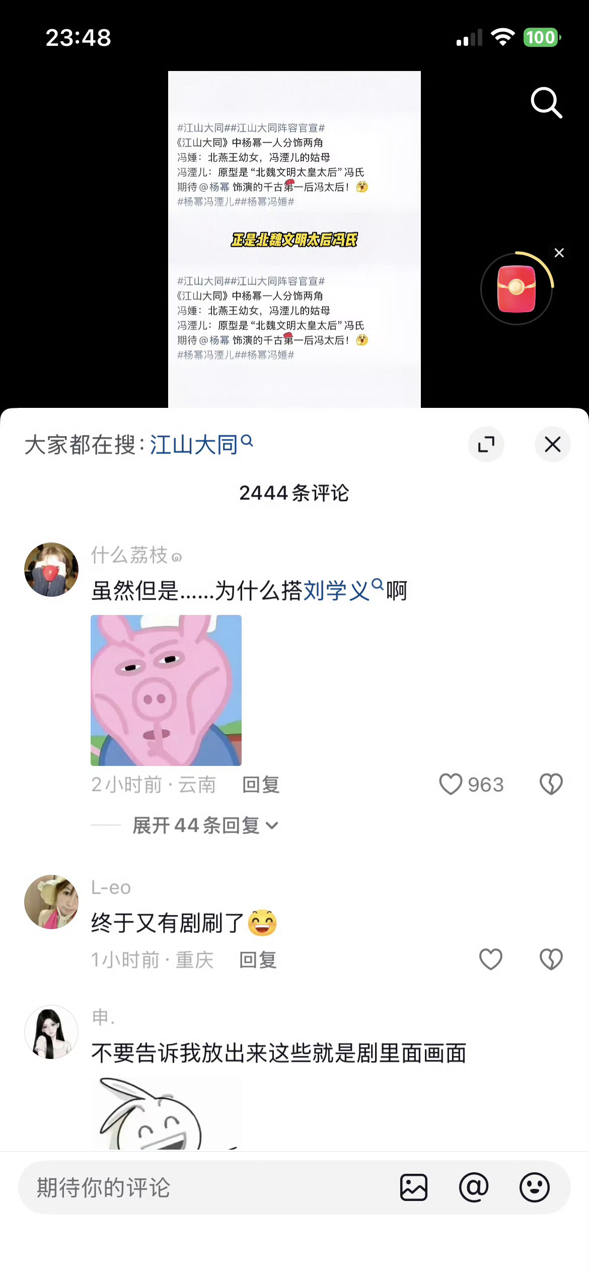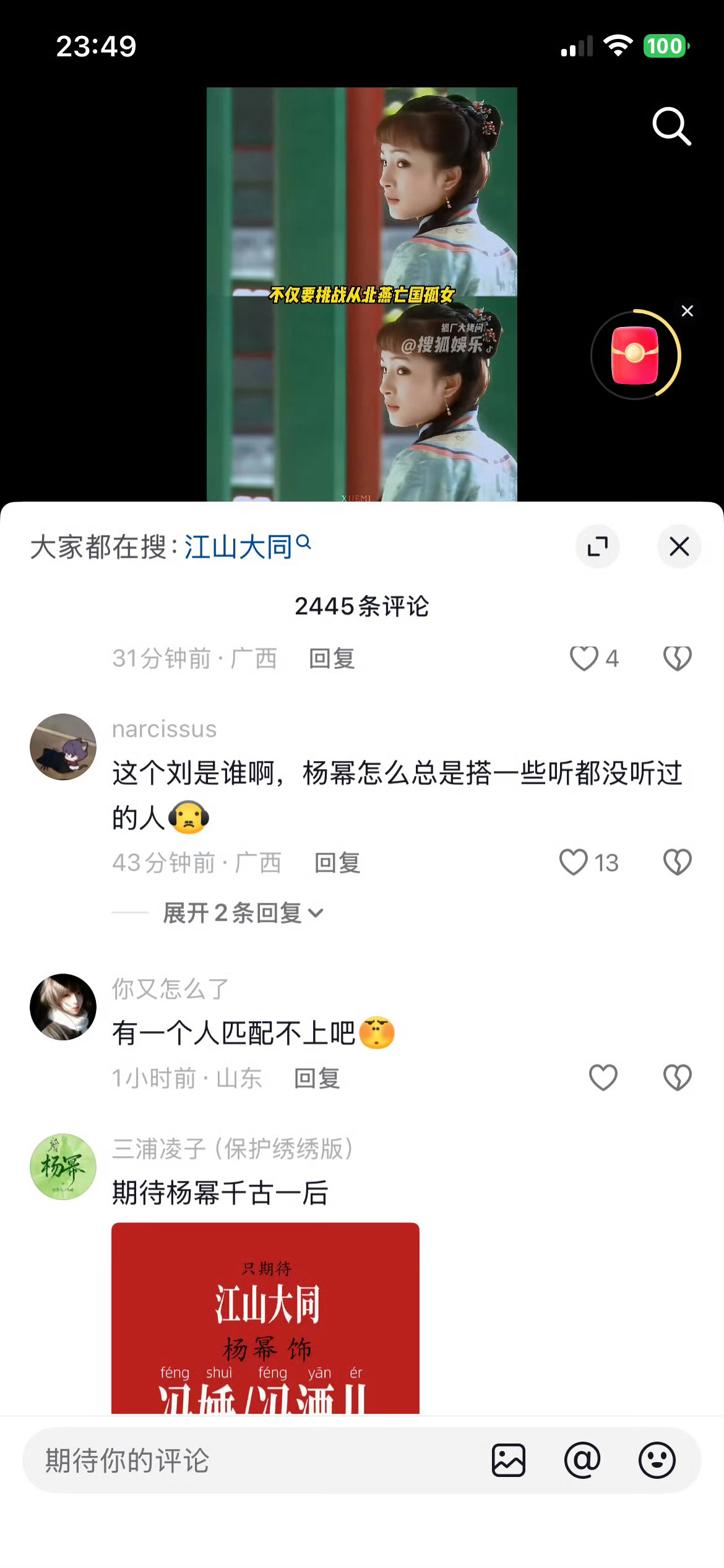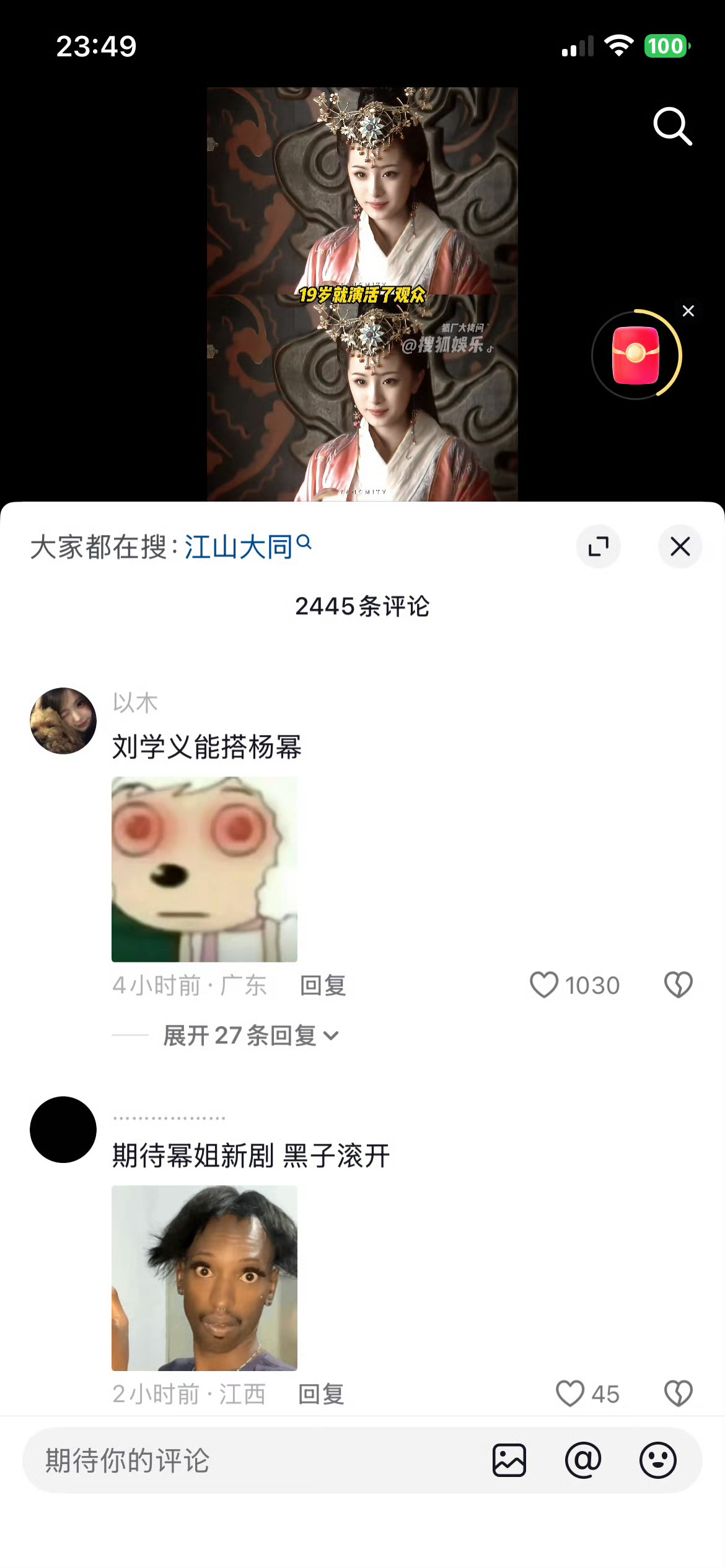 江山大同 真诚建议剧组还是不要冒险,这样一个拍了半辈子无一点水花的素人演员,要么少给点镜头,要么直接换人,看看大众看到演员阵容的反应吧
