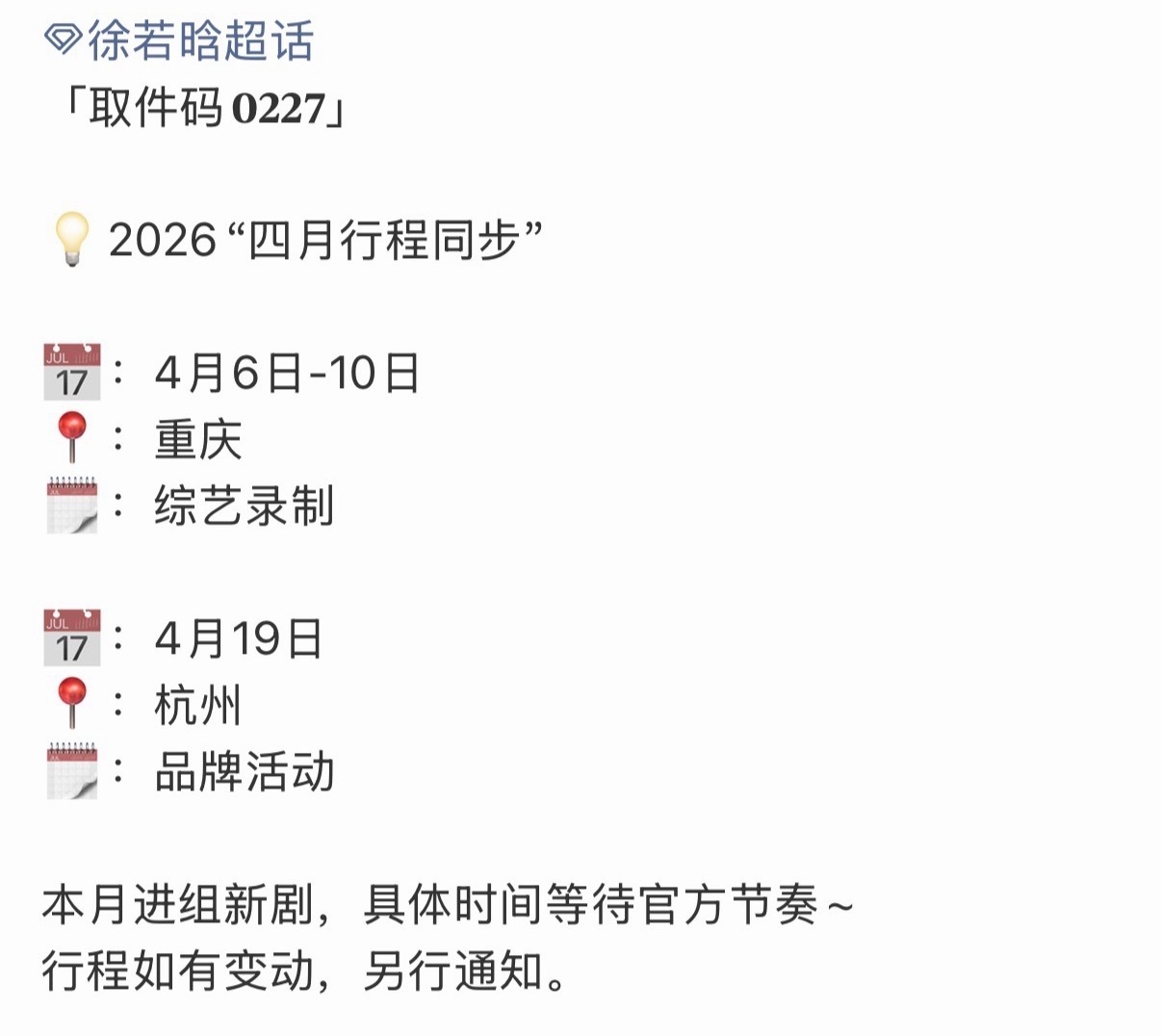 开始燥候徐若晗四月将进组新剧徐若晗四月进组新剧