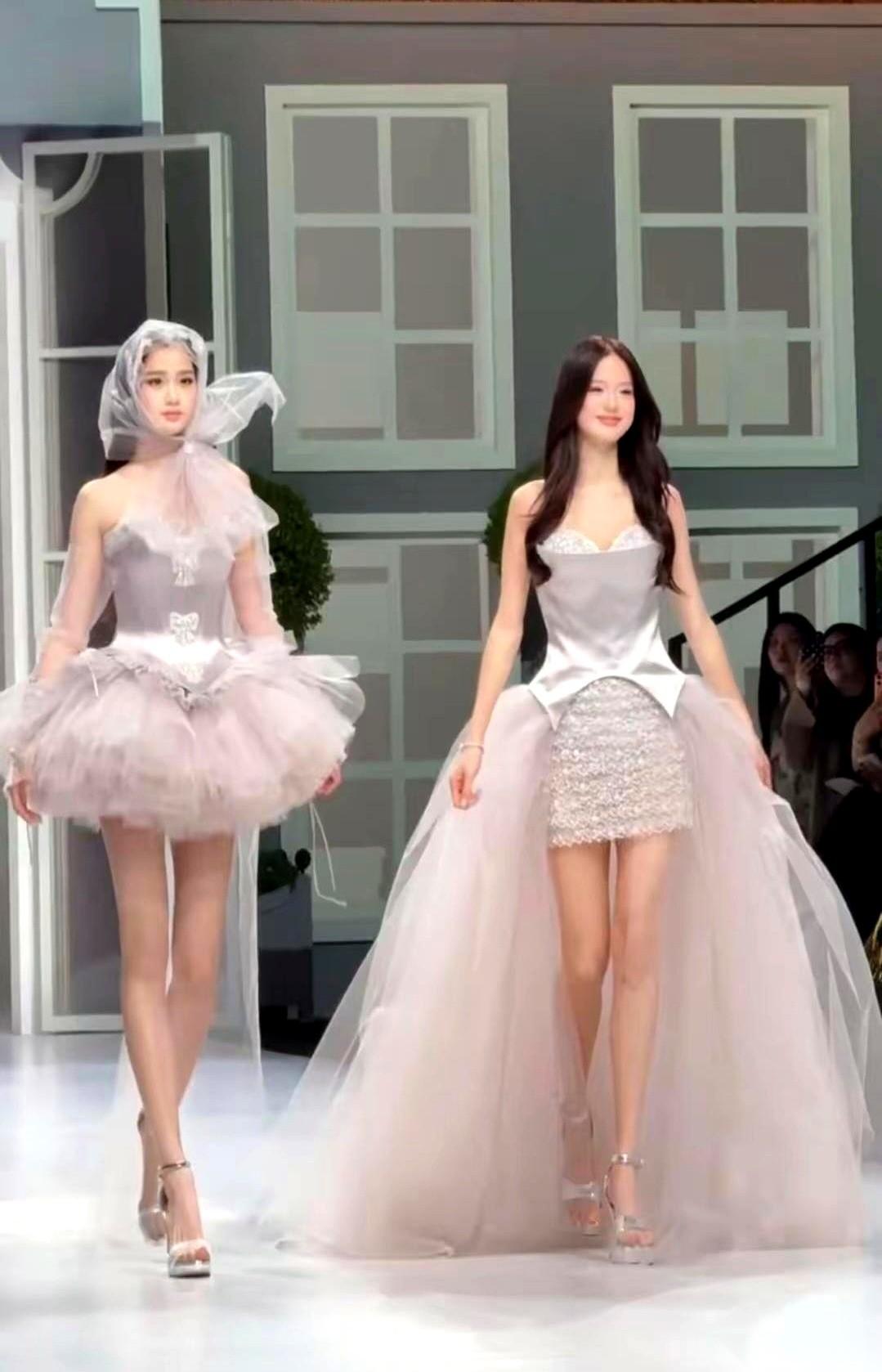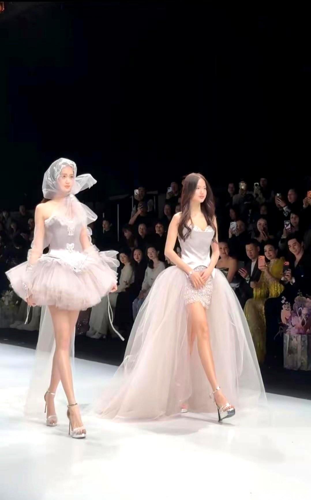 上海,二零二六年三月二十八号,王锋大秀的灯光刚暗下来。 音乐还没进主歌,T台尽头,一个冷脸的女孩先走了出来,一身黑,眼神像刀子,直直切开全场的空气。前排那些见惯了大场面的时尚编辑们,手机举到一半,动作都慢了半拍。 这气场,是姐姐张思捷。 还没等台下的人回过神,她身后,光晕里又探出另一个身影。一身白纱裙,嘴角噙着一点甜,眼睛亮晶晶的,像刚剥开的水晶软糖。 是妹妹考拉。 一个像冰,一个像糖。 两个人就这么一前一后走下来,全场的快门声瞬间炸了。姐姐的每一步都踩在鼓点上,又酷又飒,下颌线绷得紧紧的。妹妹跟在后面,裙摆飘起来,冲着一个镜头歪了下头,笑了。 整个秀场嗡的一声,旁边有人手机直接掉在了地上。 导播的镜头死死锁住这两个人,一个清冷疏离,一个灵动娇俏,明明是两种完全不同的风格,但站在一起,那种画面冲击力,简直要把天花板给掀了。 有人说,钟丽缇这是生了两个“王炸”。 一个继承了她骨子里的御姐范,一个复刻了她巅峰时的甜美。你说,这俩姑娘,到底谁的镜头感更绝?