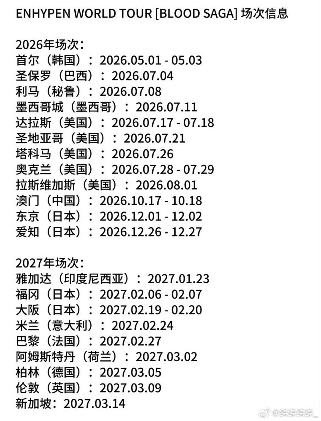 ENHYPEN新世巡官宣ENHYPEN 世巡爽!!!少爷们又要开始当空少了,期待我们妹宝
