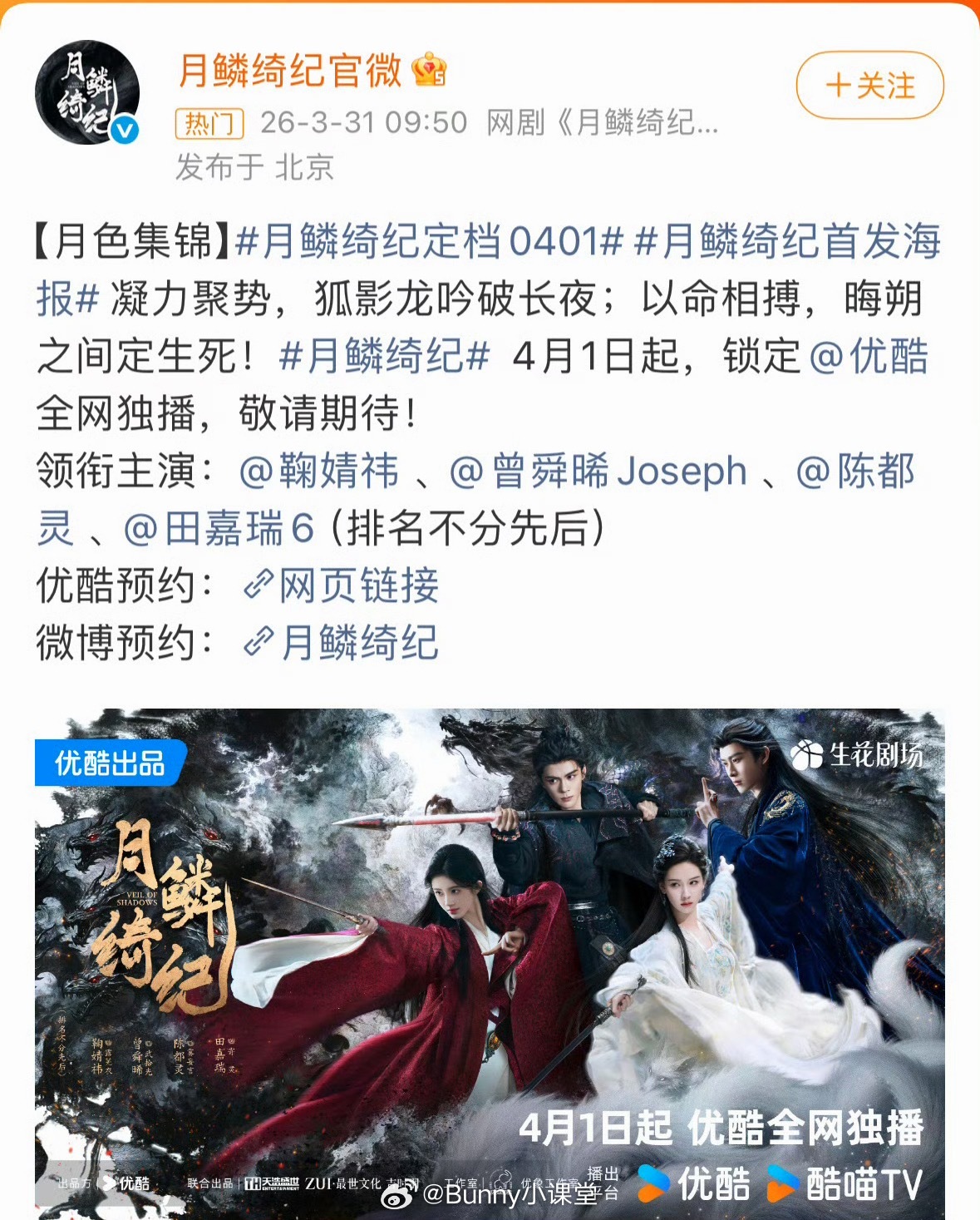 鞠婧祎被实名举报偷税漏税,其主演的月鳞绮纪官宣明天播出!太刺激了吧