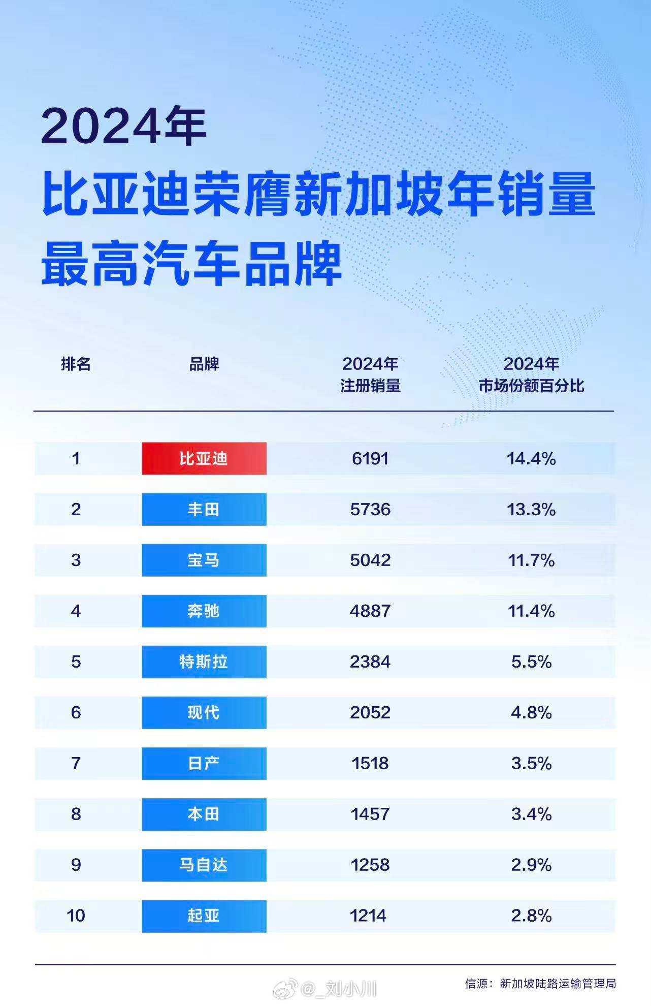 中国新能源汽车持续影响世界,比亚迪包揽新加坡多项销量冠军:乘用车连续两年销量第一